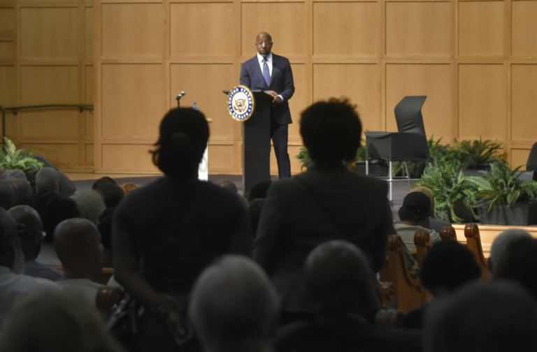 Sen. Raphael Warnock took questions from constituents at Zion Hill Baptist Church in Atlanta. (Ross Williams/Georgia Recorder)