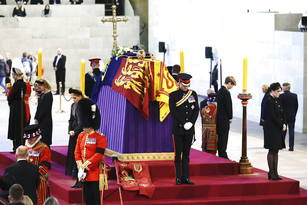 On Friday, the queen’s four children, King Charles III, Princess Anne, and princes Andrew and Edward stood vigil at their mother’s coffin.