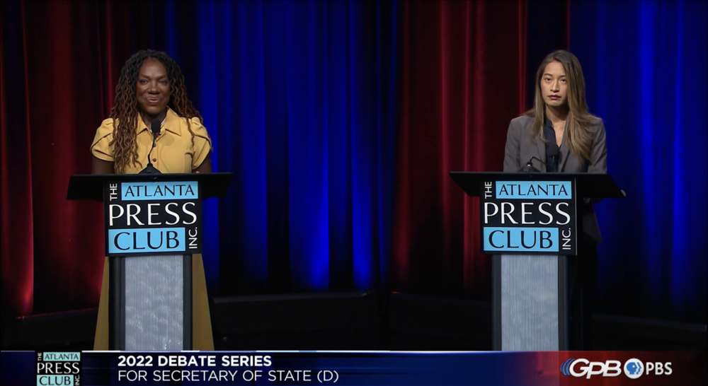 Both women leaned into their legislative backgrounds as they pushed back on new voting laws passed by the Republican-led legislature. Dawkins-Haigler touted her experience as a former chair of the Georgia Legislative Black Caucus, while Nguyen pointed to recent law changes undoing Georgia’s so-called “exact match” registration policy and debunking false fraud claims pushed in 2020 and 2021.