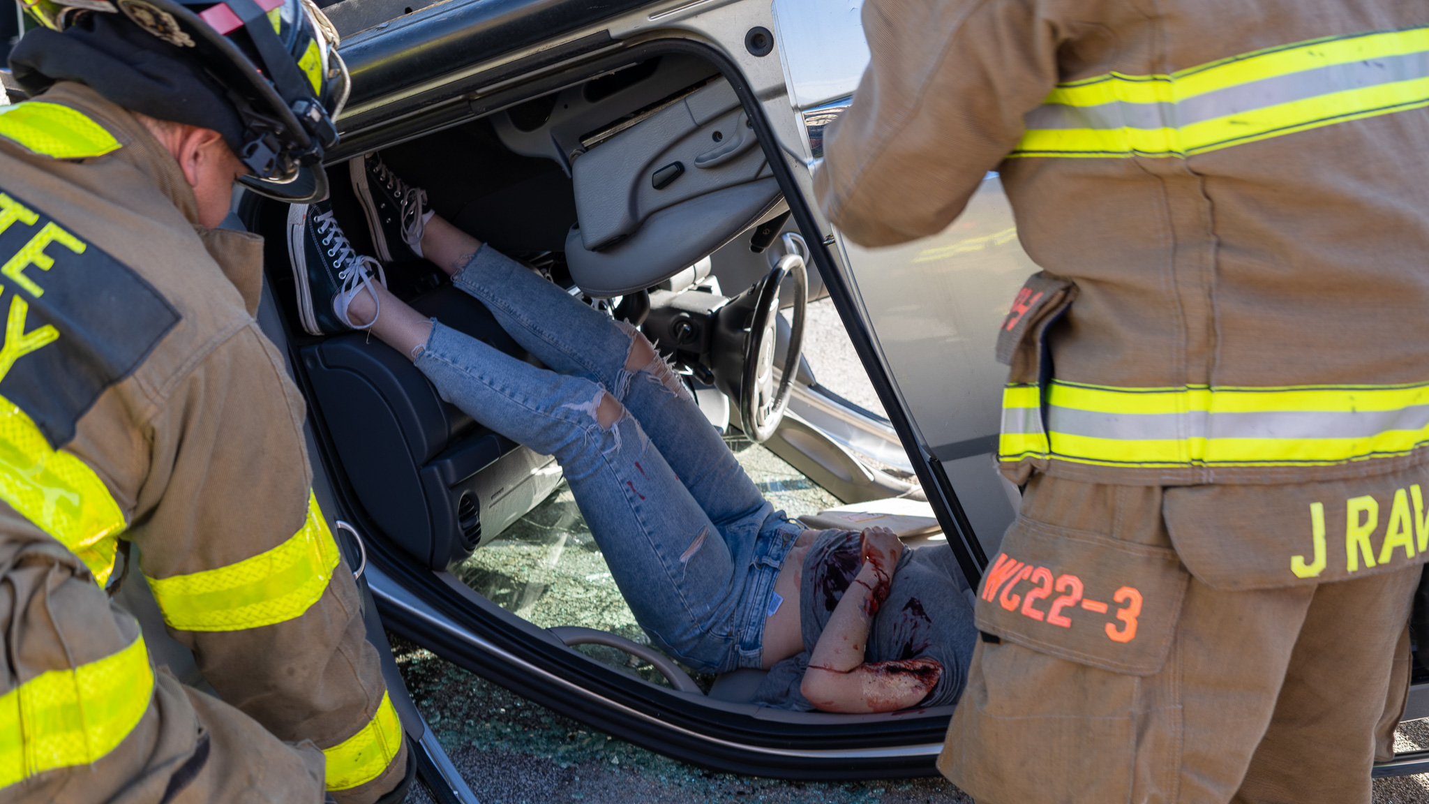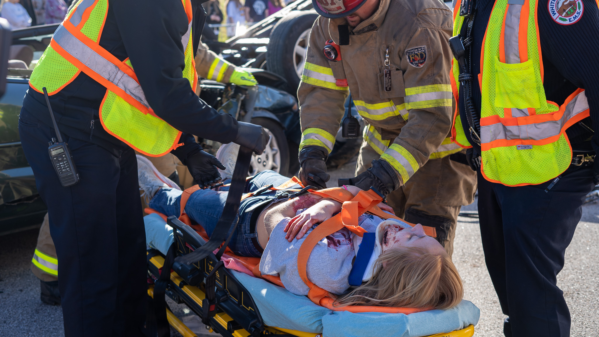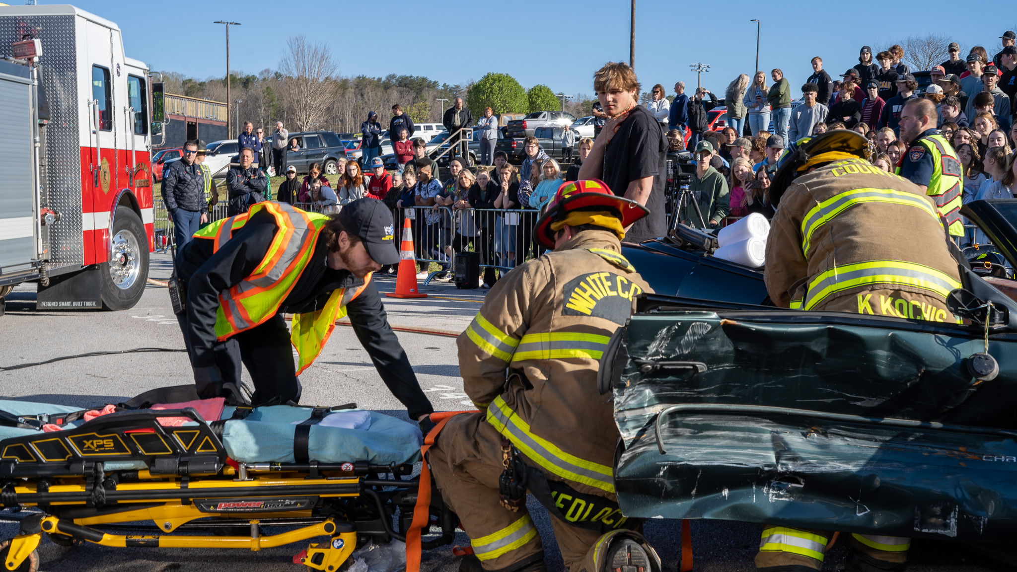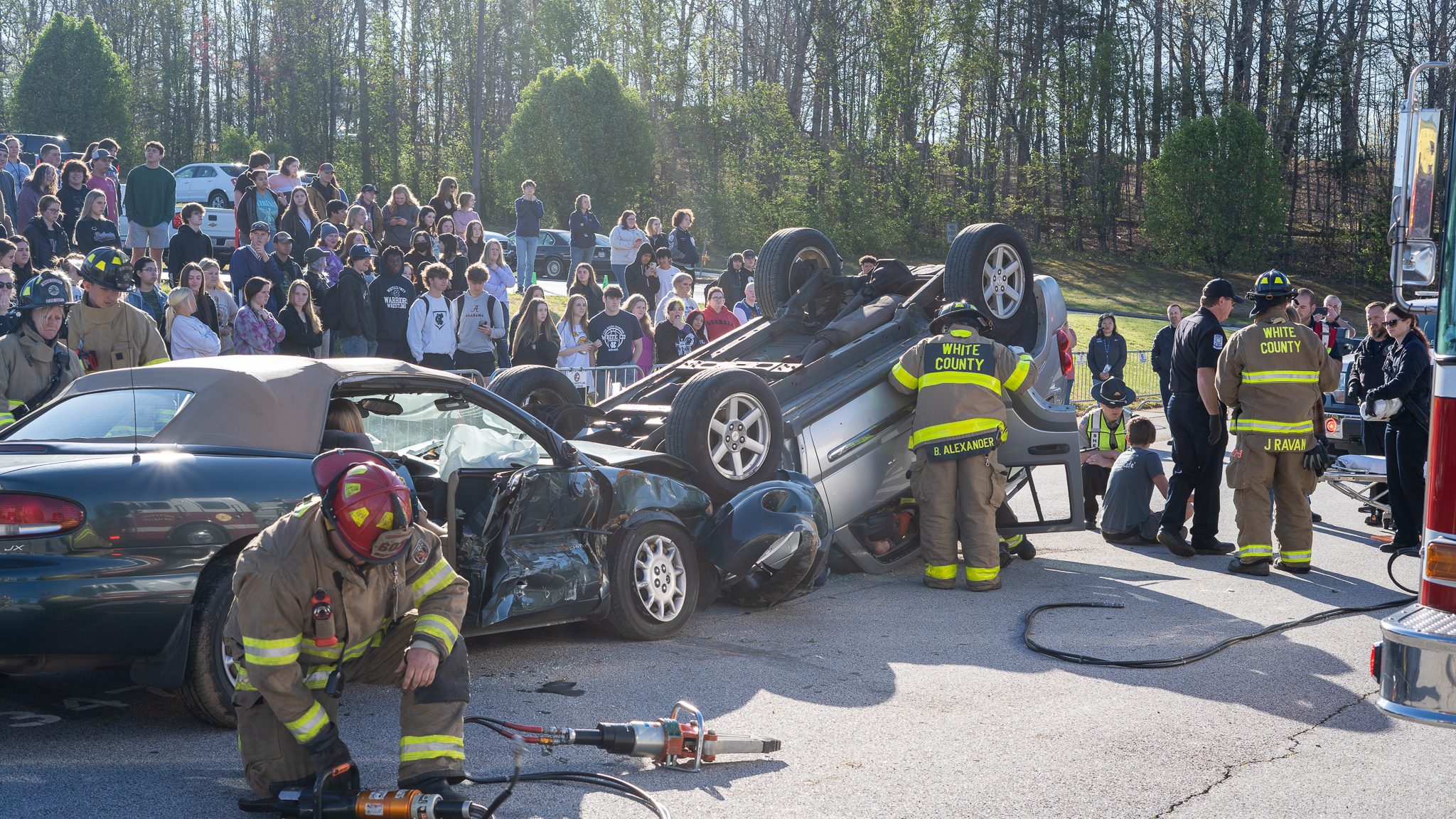 “I believe it is important for the students to see this type of exercise. This makes them aware of the consequences of distracted driving or driving under the influence,” says White County Fire Services Battalion Chief Josh Taylor.