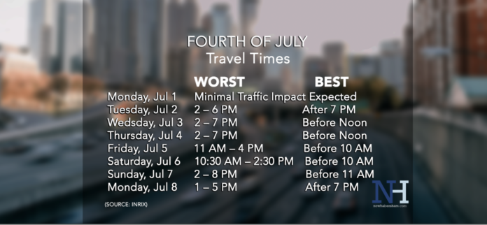 “Drivers in large metro areas can expect the worst traffic delays on Wednesday, July 3rd, as they leave town, and Sunday, July 7th, as they return,” said Bob Pishue, transportation analyst at INRIX. “Road trips over the holiday week could take up to 67% longer than normal.”
