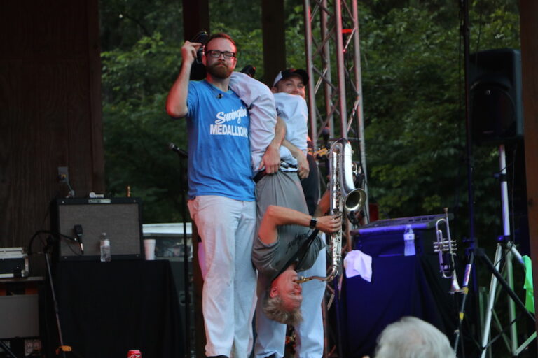 As kids splashed, parents and grandparents danced to the music of South Carolina beach band favorite, The Swingin’ Medallions. The group performed on stage at Pitts Park. After dark, the fireworks took center stage.