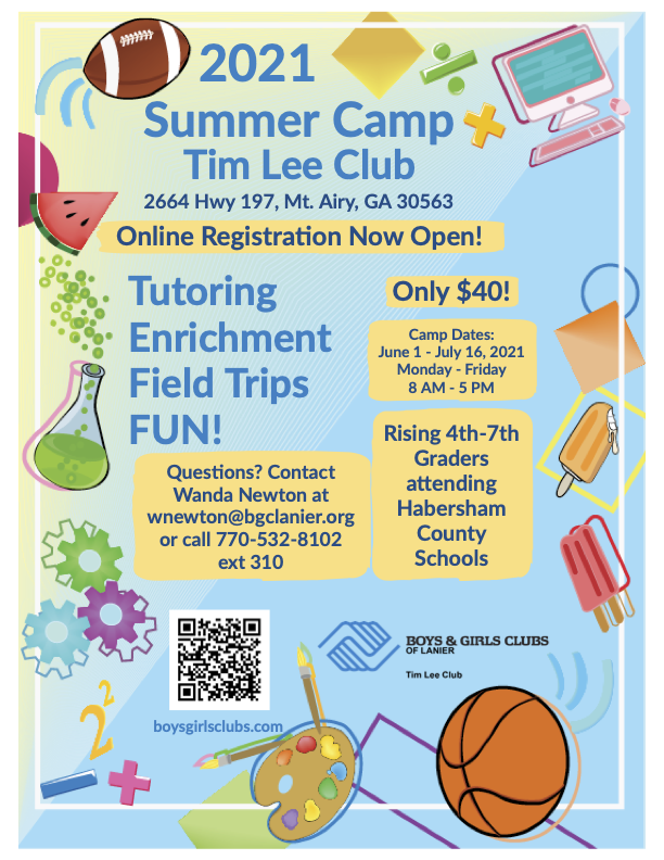 The newly established Boys and Girls Clubs of Lanier Tim Lee Club provides summer programming for all rising 4th – 7th graders in Habersham County Schools.