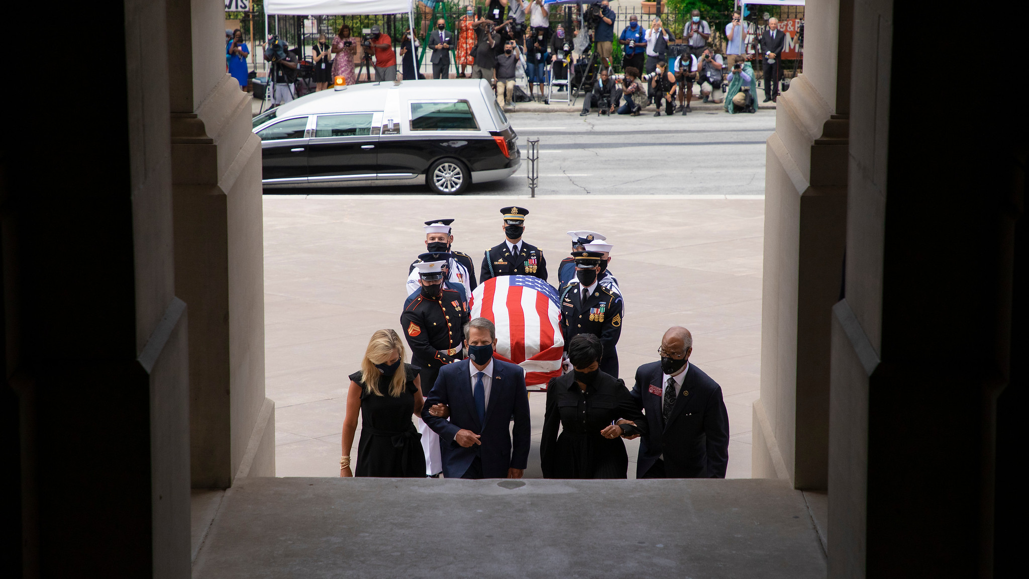 Other markers on the way to the memorial at the Capitol included the John Lewis Mural on Auburn Avenue, John Lewis Freedom Parkway, and the home where Martin Luther King Jr. was born. The hearse arrived at the Georgia Capitol shortly before 2 p.m., where Bottoms joined Gov. Brian Kemp, and state legislators Rep. Calvin Smyre and Rep. Karen Bennett in offering remarks during a private ceremony honoring Lewis’ legacy.