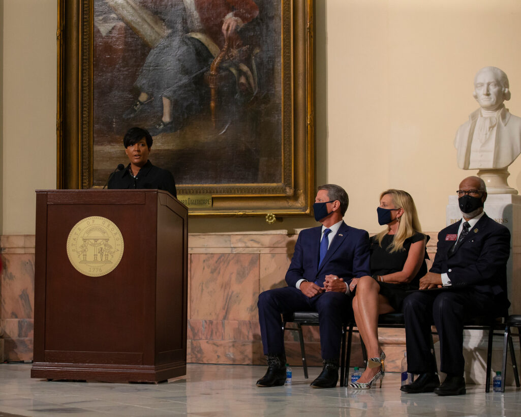 Atlanta Mayor Keisha Lance Bottoms told hundreds of masked guests she was inspired by Lewis since childhood. Her mother was a hairdresser for Lewis’s late wife Lillian.