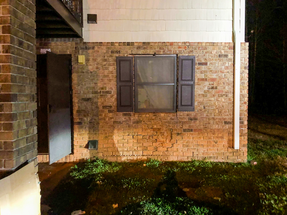 The vehicle hit the brick wall of the first floor of the apartments, causing the bricks to cave in and shatter at the site of the impact. (Hadley Cottingham/Now Habersham)