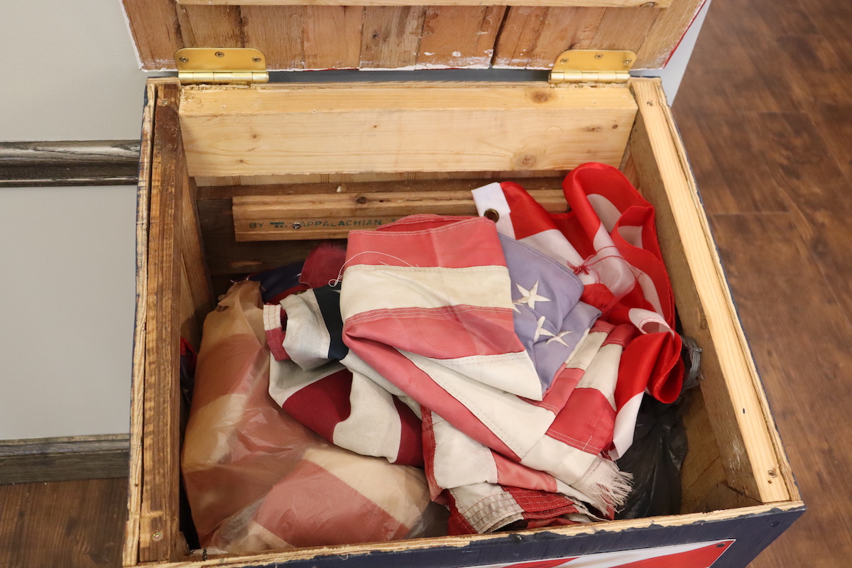 The VFW quartermaster emptied the receptacle on March 15, so there is plenty of room to receive more damaged American flags for retirement.