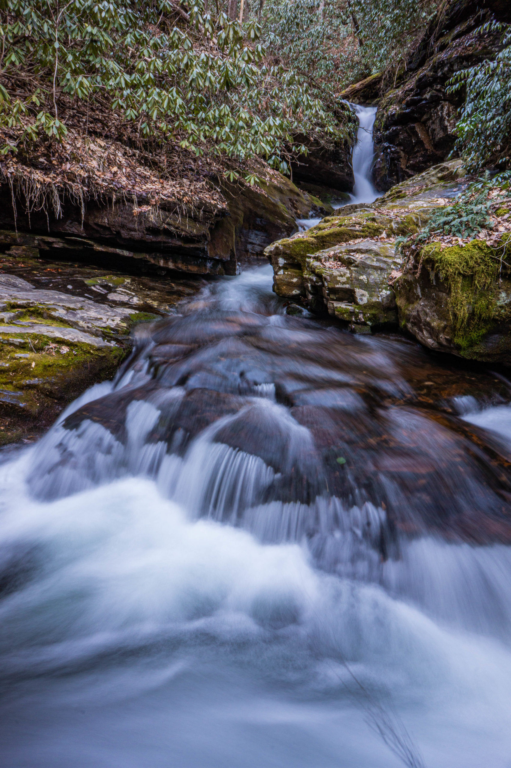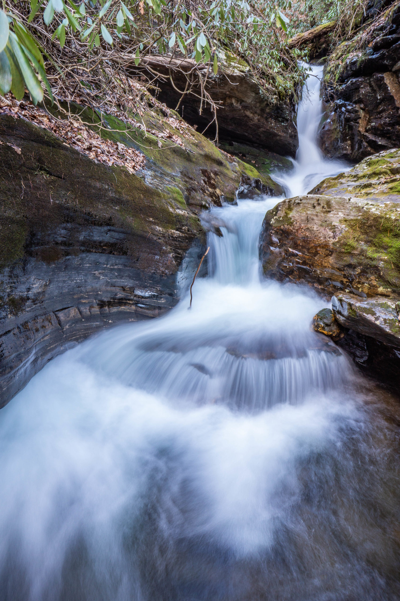 The Horse Trough trail accesses it, but you take a slight diversion before reaching it. If you hang a right at the bridge and follow the faint side trail up the creek, you will stumble upon one of the more spectacular waterfalls in the region. I have seen it called both “The Chute” and “Chute Falls,” but photographs are few and far between since most people just visit the other, more popular Horse Trough.