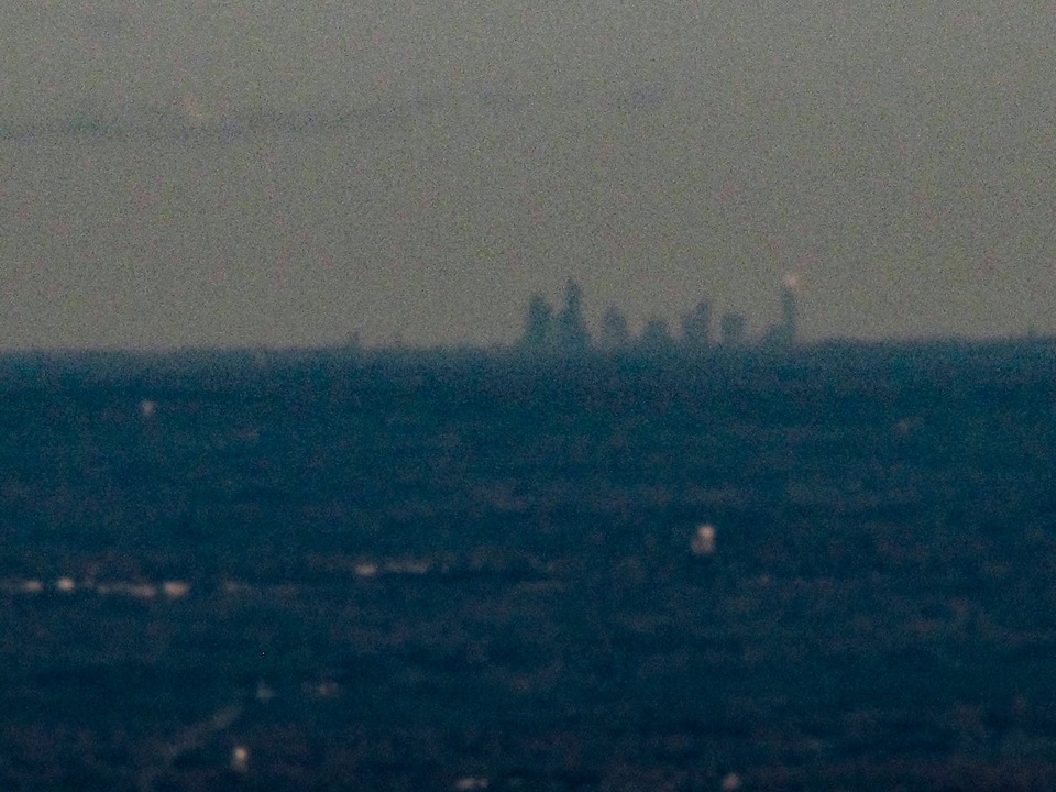 The next time was far more “classic” with just a low-humidity day. The buildings appear faint from this far of a distance, but they are still easily visible to the trained eye.