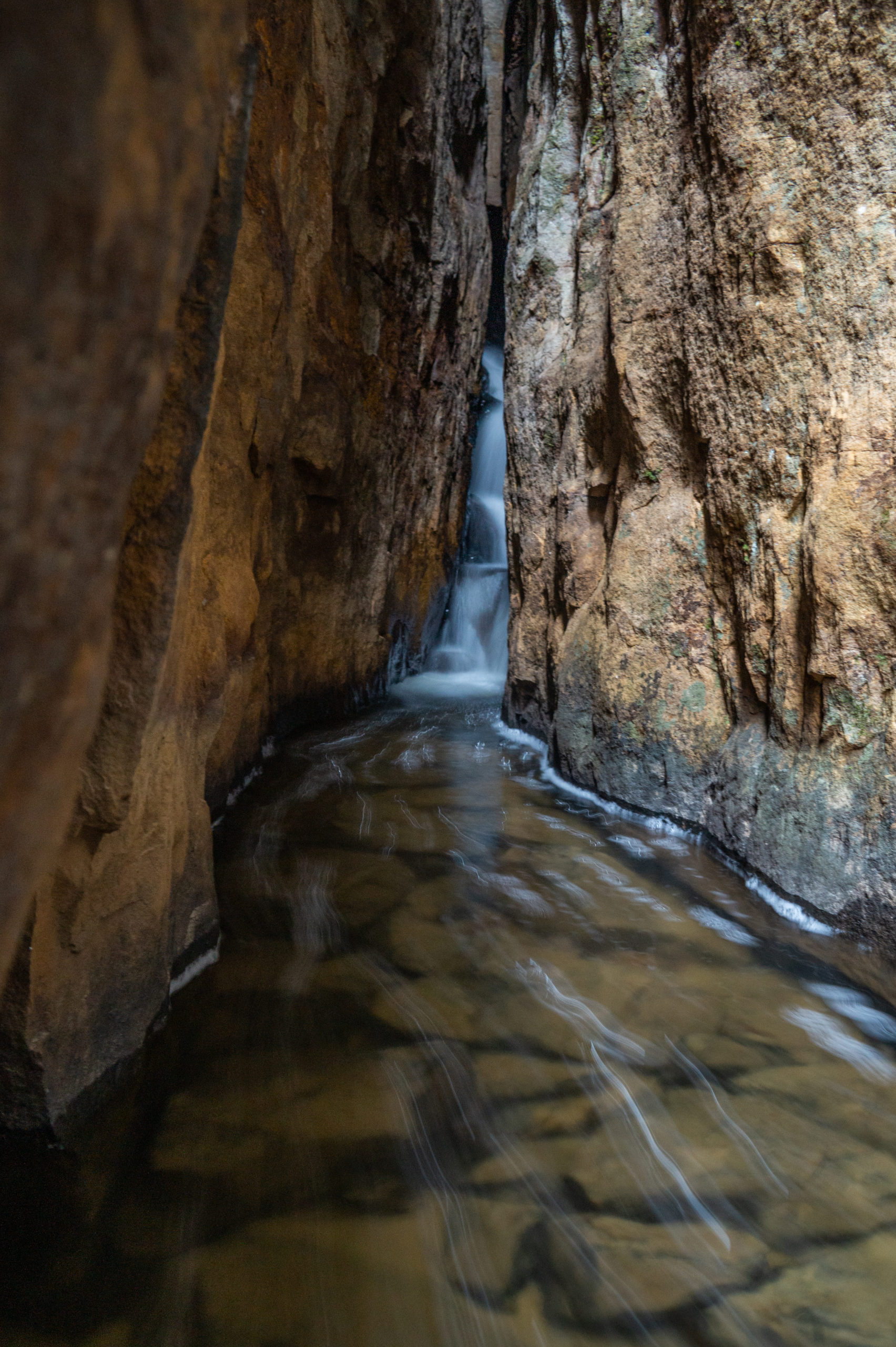 The best hike in the region is probably the Endless Wall Trail. This is a 3-mile loop that takes you to the top of steep cliffs. Unlike many gorges on the east coast, the rims of this one are fairly flat. This makes the hiking relatively easy compared to other locations, but you can wind up in some pretty gnarly hiking if you decide to go down the rim. There are rewards to be had for your effort, though, like this relatively unknown small waterfall tucked between two massive cliff faces. Slot canyons are very, very rare in the southeast. Matteus Falls lies at the top of a small, but very impressive one.