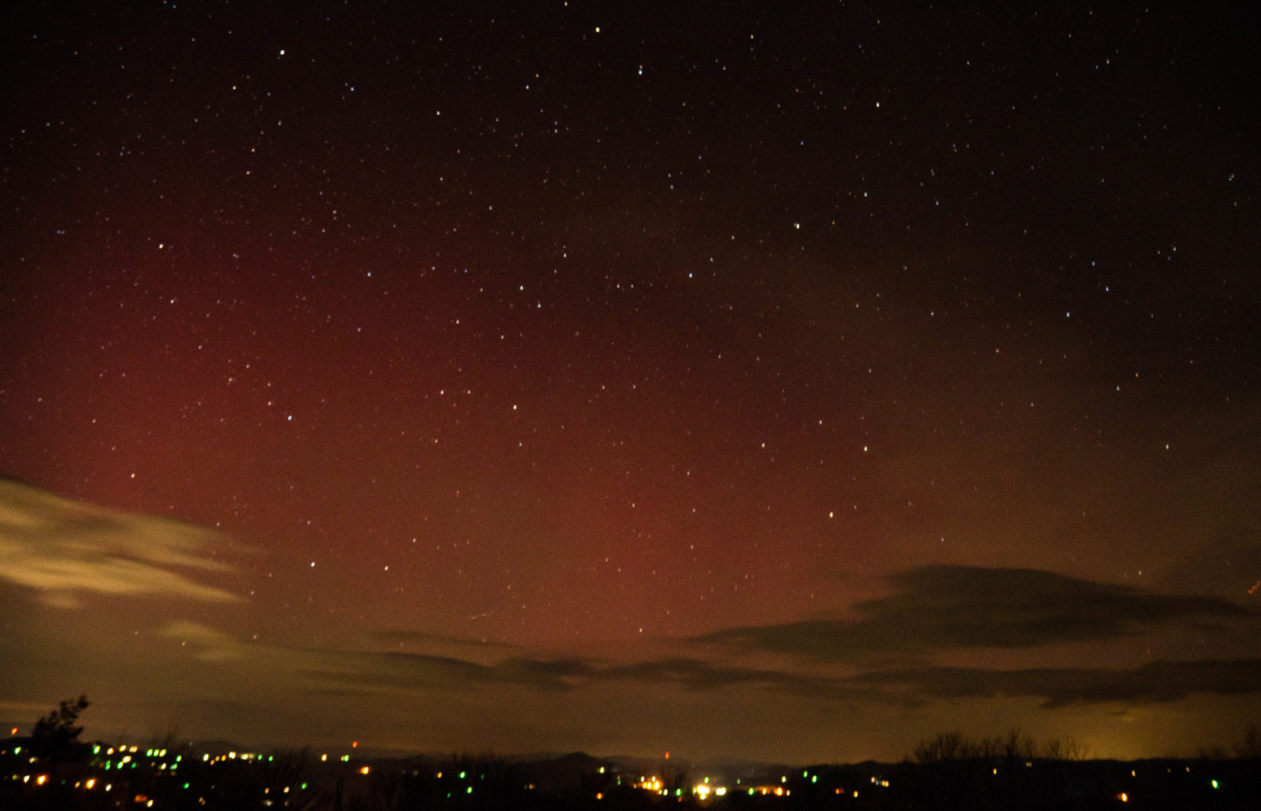 As soon as I pulled into my spot, I was immediately greeted by a familiar red glow in the sky. You are probably more familiar with green auroras, but in the Southeast, they are far more commonly seen as red. This is because we see them higher up in the atmosphere than those in the northern U.S. and Canada. Auroras higher up have different reactions that change their color. They are also not nearly as bright, most often only appearing as a red glow in the sky.