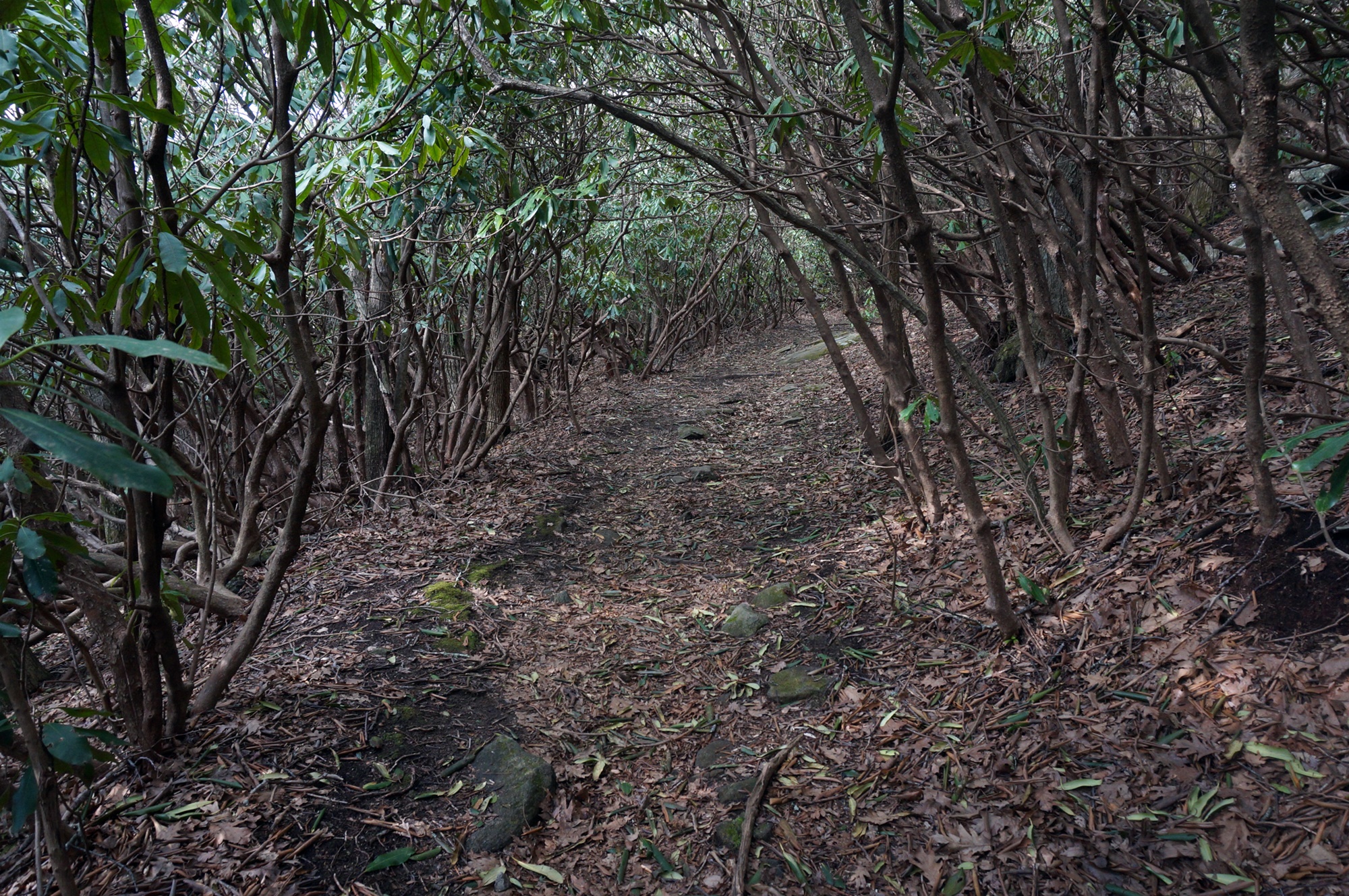 From here, park and begin the roughly 20-30 minute hike (less if you are in particularly good shape) to the top of the ridge. The entire hike sits above 4500 feet, and you will reach just over the 4900ft mark by the top (higher than the highest point in Georgia), so be prepared for relatively cooler air. The trail is easygoing and consists almost entirely of one long rhododendron tunnel. This makes for a beautiful hike when the rhodos bloom in June.