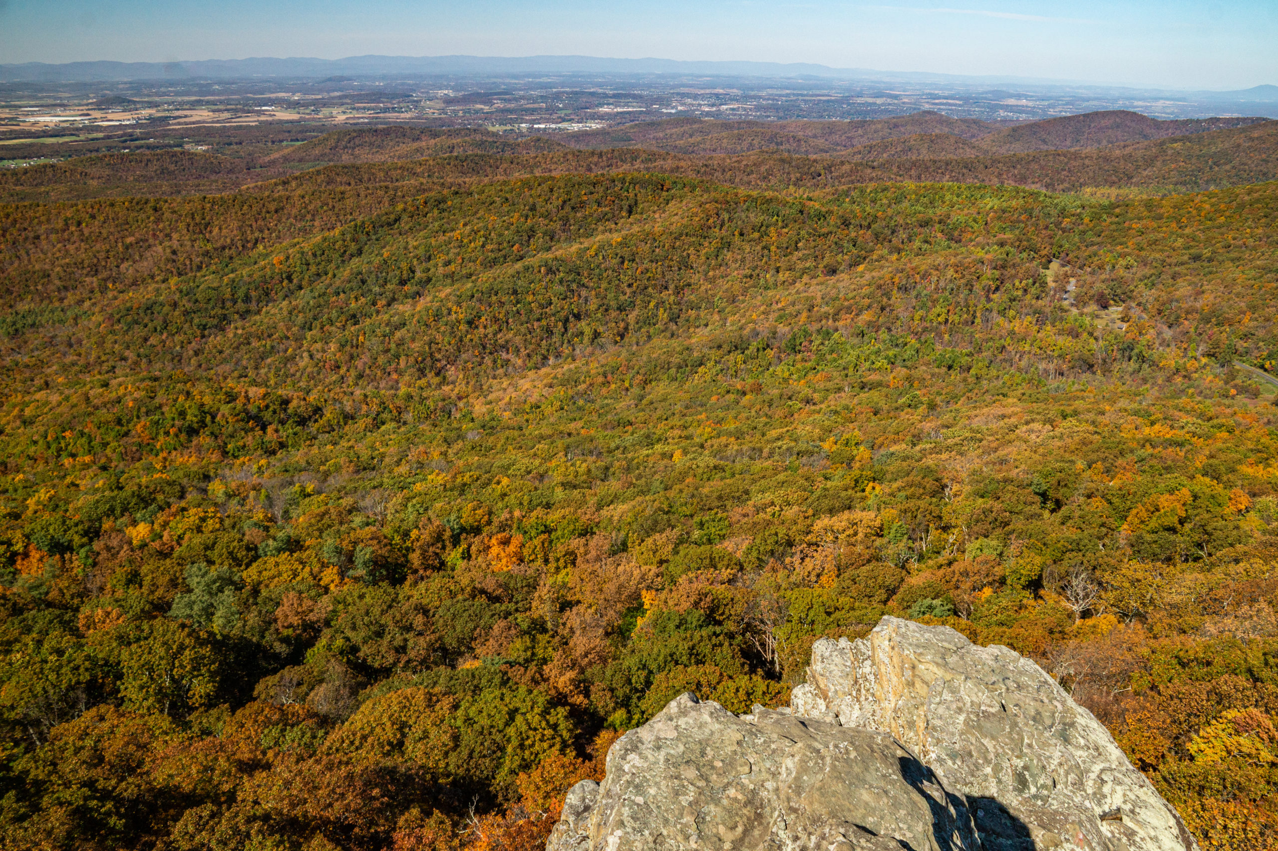 You look north into Shenandoah, west into the valley, and east towards the coast, all unobstructed views. I found the rocks up top to be quite slippery compared to most rock outcrops I visit, though, so be careful.