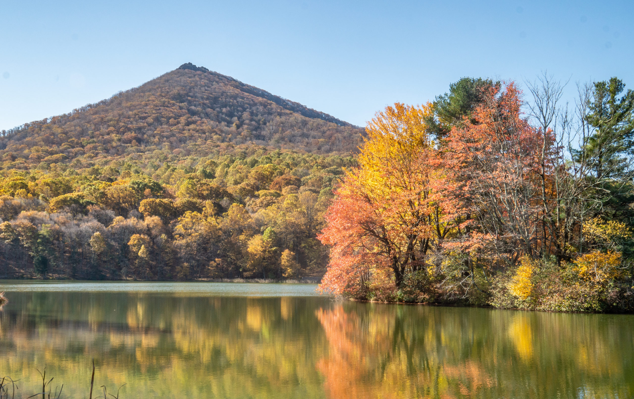 Between here and MP85 I didn’t take a ton of photographs. The parkway gradually works downhill to the James River and I was in a hurry to get to my sunset location: the Peaks of Otter. This was where I had stayed on my previous trip north in 2018, and making it here meant I had completed the entire parkway. The sunset was a bit of a wash, with no clouds and an uncooperative camera lens that wanted to flare more than usual due to the very bright sunlight.