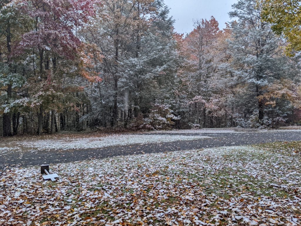 With a forecast for snow, I naturally loaded up my tent and some fire starter and headed north. I camped about 20 minutes away at a place called Ray’s Campground which I highly recommend. I awoke on Wednesday morning to find snow covering the ground, something I was quite hoping for.