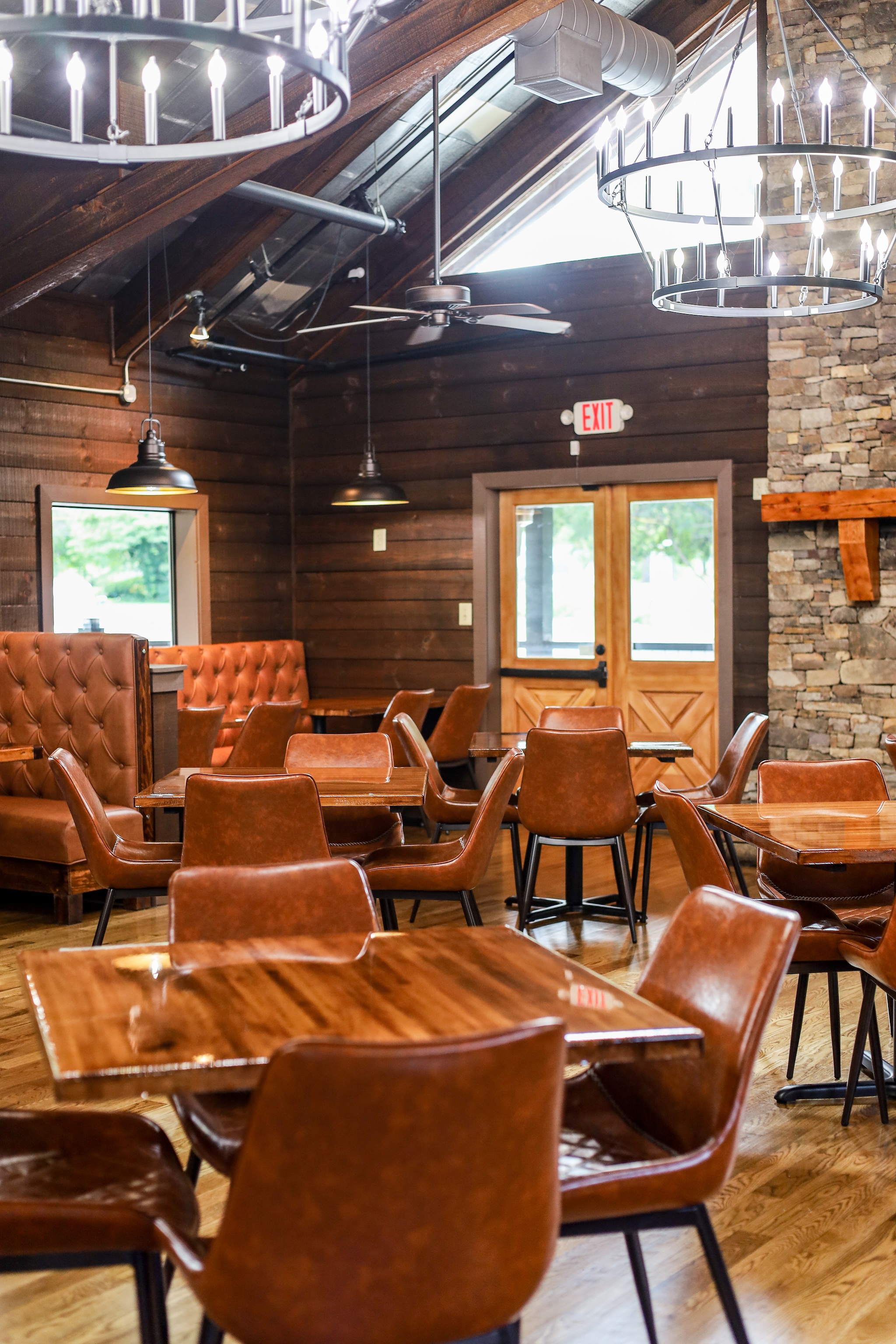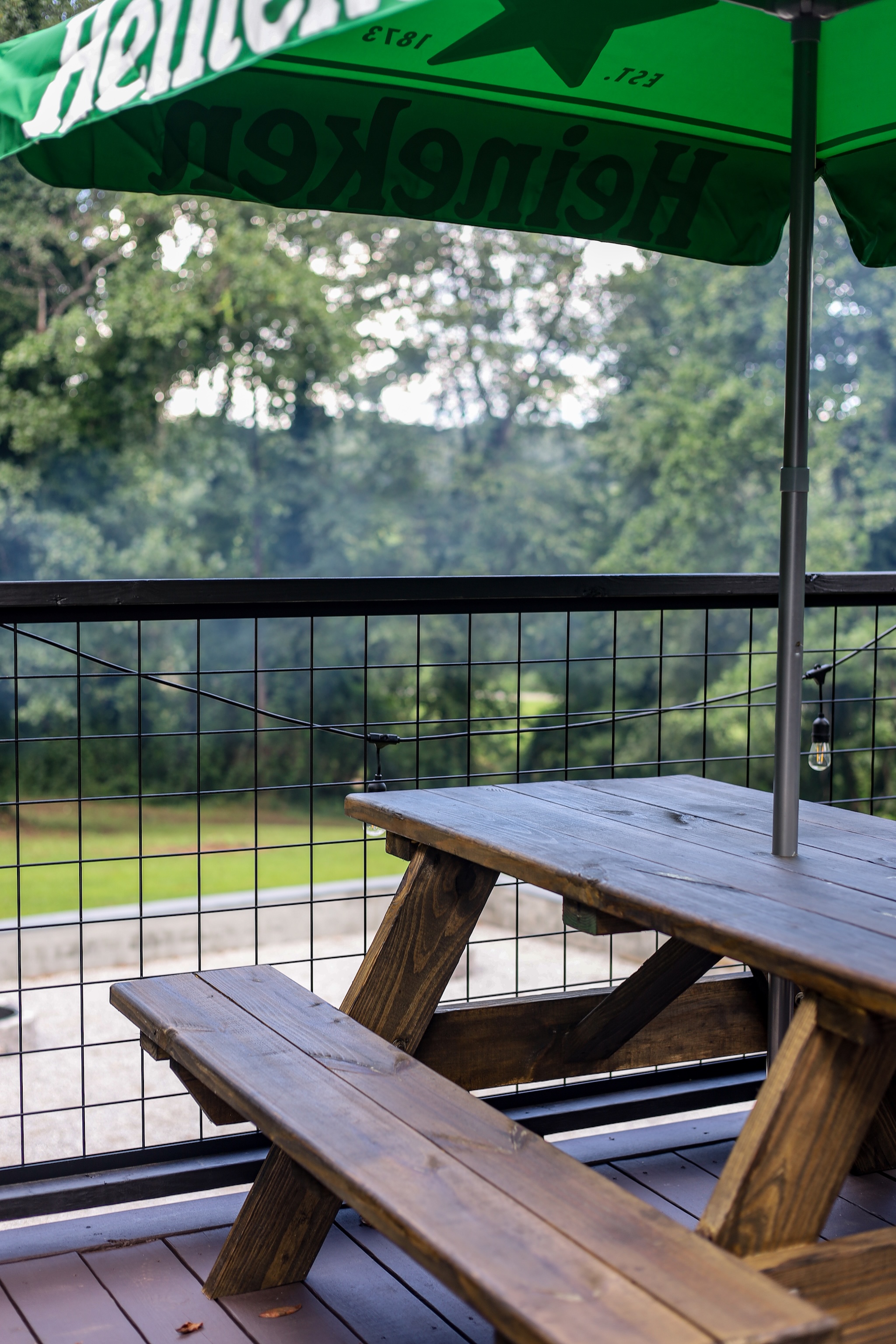 In addition to the interior renovations, the exterior changes have created a new gathering spot in Clarkesville. The new owners built a deck and outdoor fire pits and cleared a number of trees to open the back lawn up to a view of Rocky Branch near the Soque River Greenway Trail. They plan to offer cornhole and other activities and envision Rustic Cabin and its grounds as a place where people can “hang out,” perhaps walk their dogs while “enjoying a beer or two.”