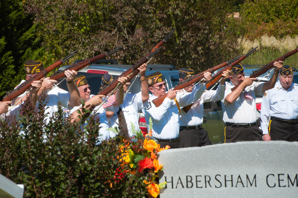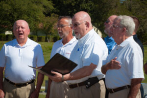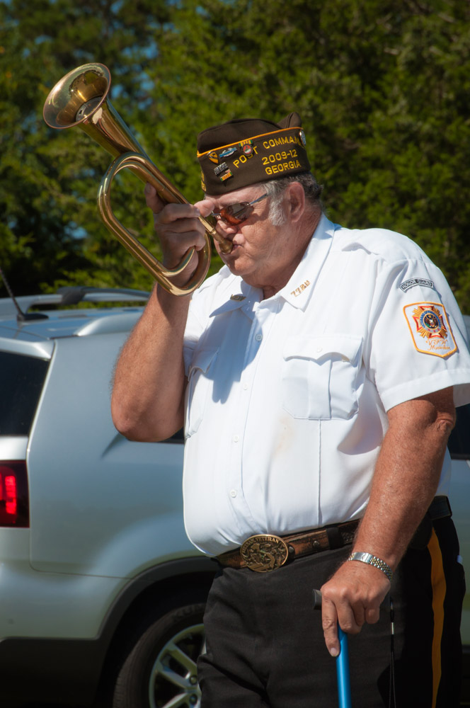 Following a wonderful rendition of The Star Spangled Banner by the Bethlehem Baptist Church Celebration Quartet, the flag was lowered to Half Mast by the Junior ROTC squad, and a moment of silence was observed. A 21-gun Salute and the haunting Taps were performed by members of the Grant-Reeves VFW Post #7720 in Cornelia, GA and Rabun County DAV Chapter 15. The Celebration Quartet completed the ceremonies with God Bless America.