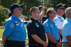 Members of law enforcement, firefighters, and first responders were front and center while WoodmenLife Representatives conducted the ceremonies, with the welcoming remarks made by Kenneth McEntire. After the invocation was given by US Air Force veteran Reverend Michael Cochran, Todd Wiley spoke of honoring and remembering in dedicating the flagpole and flag. The Habersham Central Junior ROTC cadets proudly performed the Raising of The Flag ceremony, after which Ricky Pruitt led those gathered in the Pledge of Allegiance.