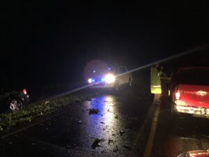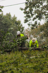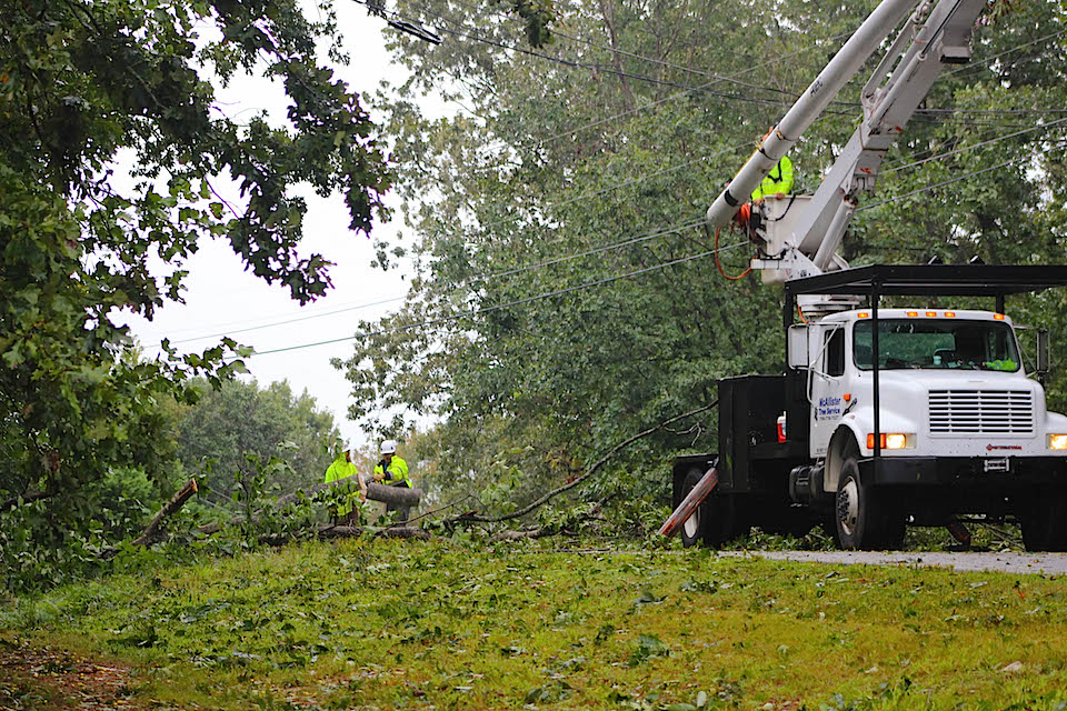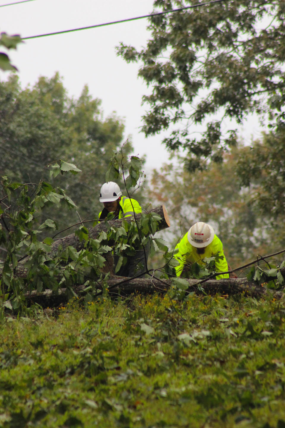 A crew from McAllister’s Tree Service clears a roadway in Alto Tuesday morning, hours after Tropical Storm Irma wreaked havoc on the area. (photo/Kara Usher)