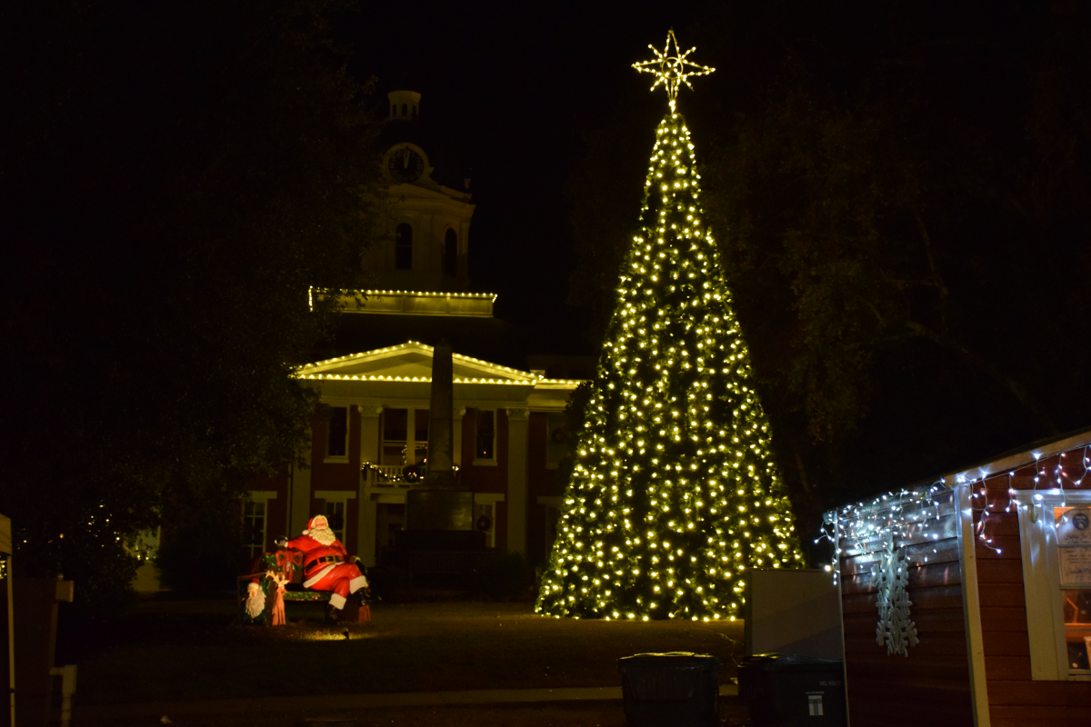 6 p.m., downtown square. Dahlonega’s historic square glows with white lights. Carriage rides and music by Radford Windham follow.