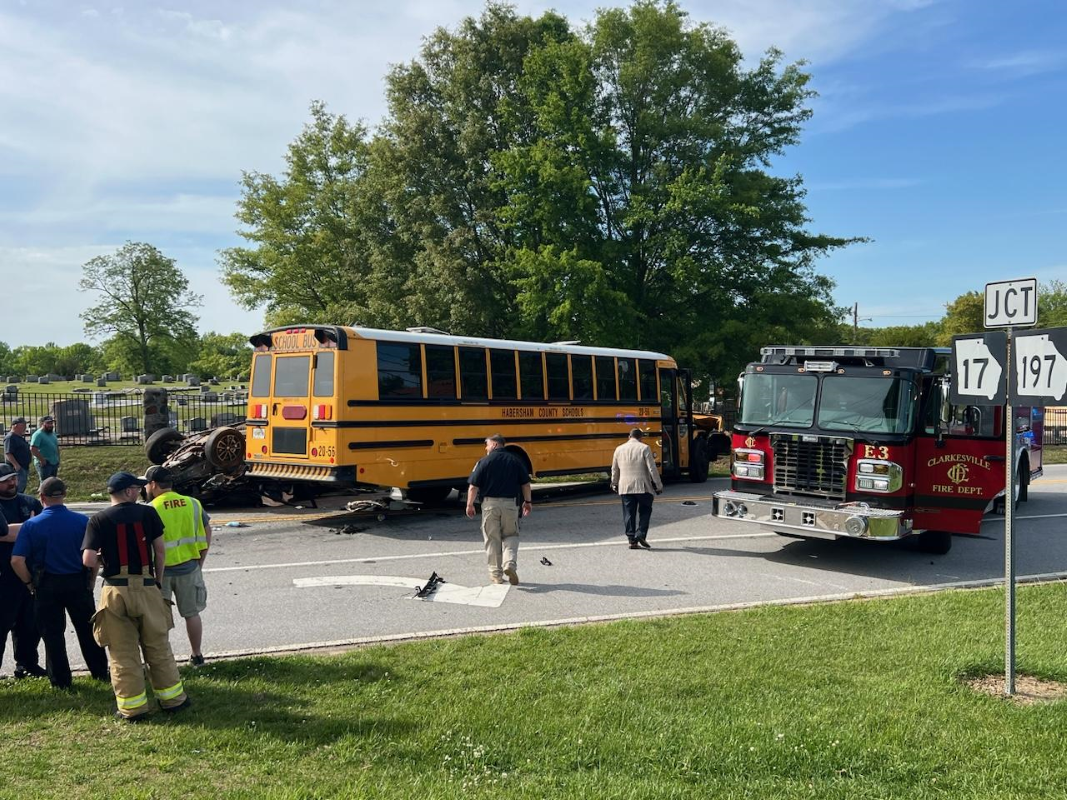 Franklin stated, “No students were on board the bus at the time of the accident. One juvenile, who was in one of the other vehicles, was treated for minor injuries and released to parents at the scene.”
