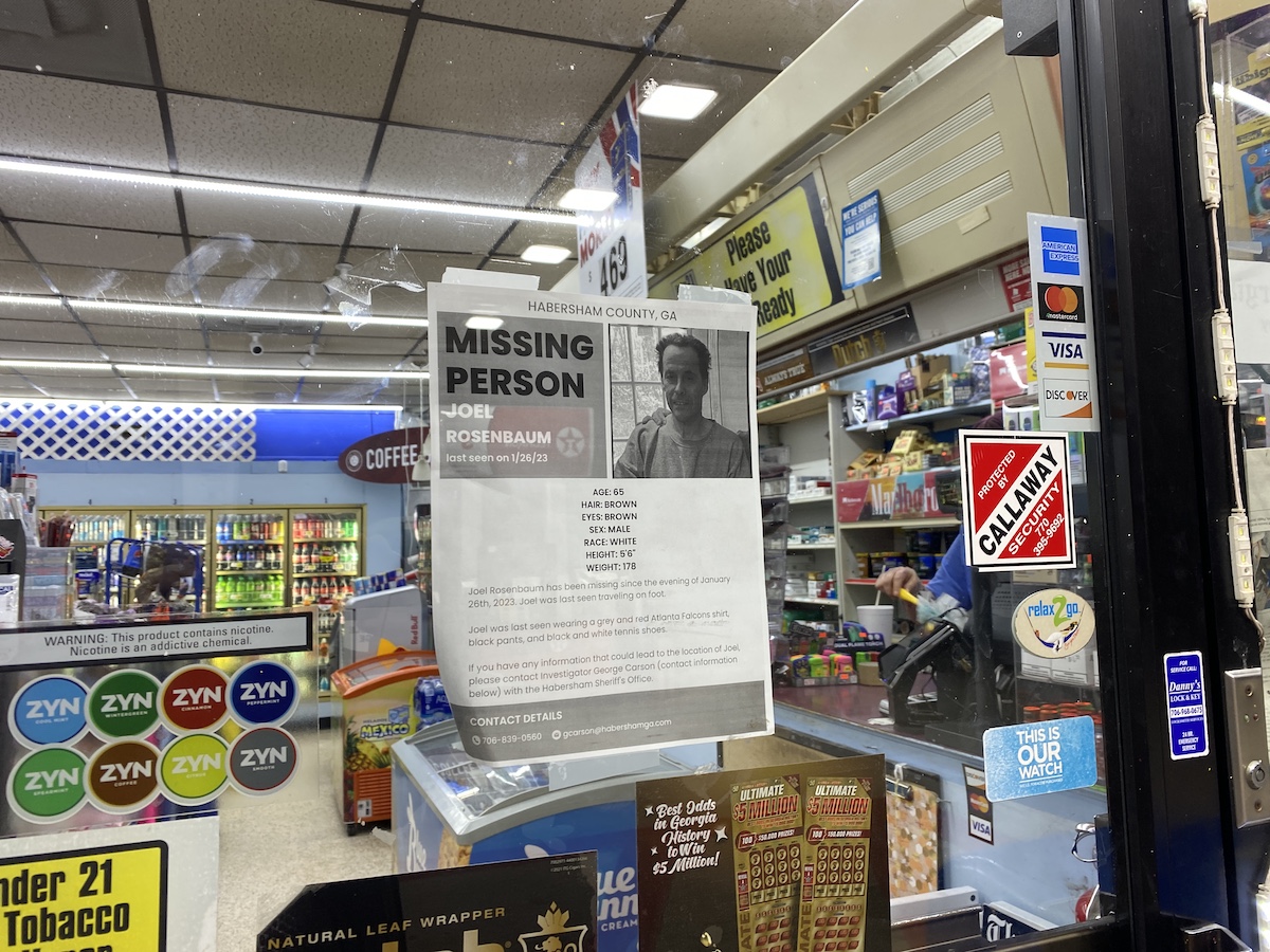 Flyers seeking information about Joel Rosenbaum are posted throughout Habersham and surrounding areas. His family and friends are offering a $10,000 reward for information leading to him. (NowHabersham.com)