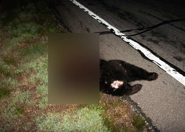 The bear’s mangled body was left on the side of the road, waiting for state transportation crews to dispose of it.