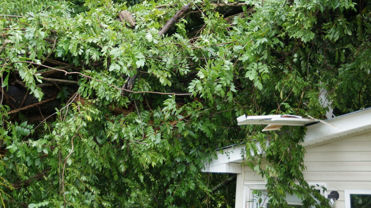 “As soon as the storm let up a little bit, we came over here to see what was going on,” says Grissom. “I’ve seen a lot of trees on roofs, and this is up there with the worst [I’ve seen].”