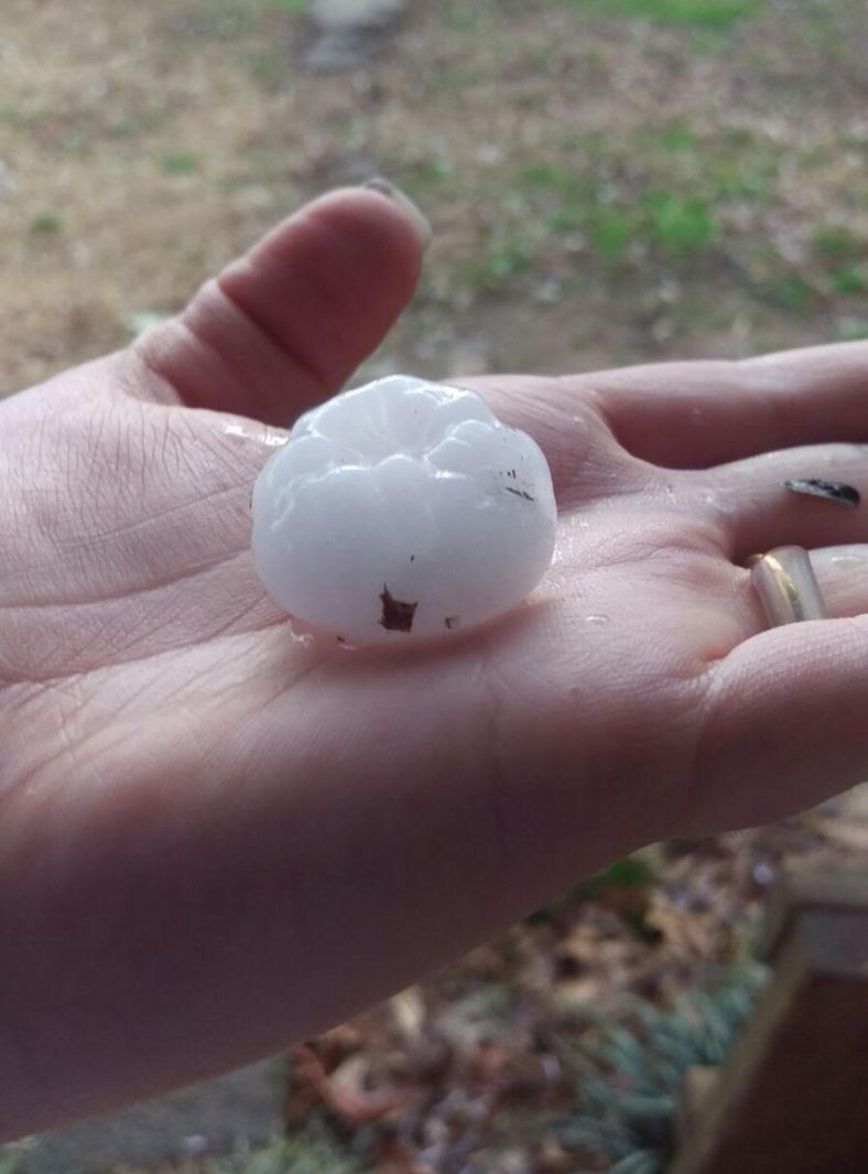 White County Fire reported golf-ball sized hail along Highway 75 near the White/Hall County line at 5PM. Drivers were pelted with hail around this time along Hwy. 129 South in White County, forcing many travelers to pull off the road to wait for the storm to pass. Residents in the Westmoreland Road area reported the hail lasting an hour or more.