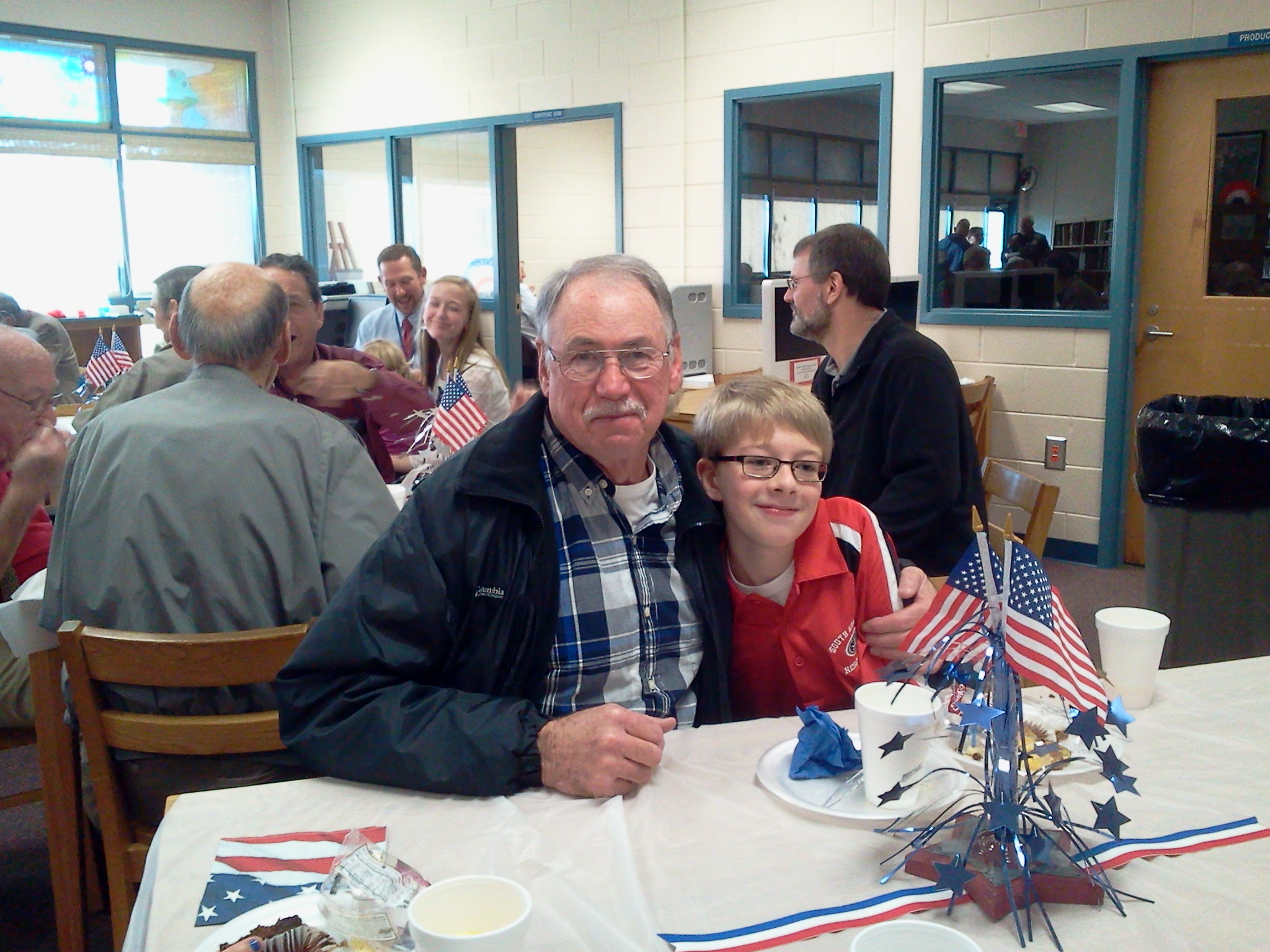 Sixth, seventh, and eighth grade students wearing red, white, and blue lined the stands. The chorus beautifully performed “Song for the Unsung Hero” leading into the reading of students’ letters, poems, and essays for our veterans.