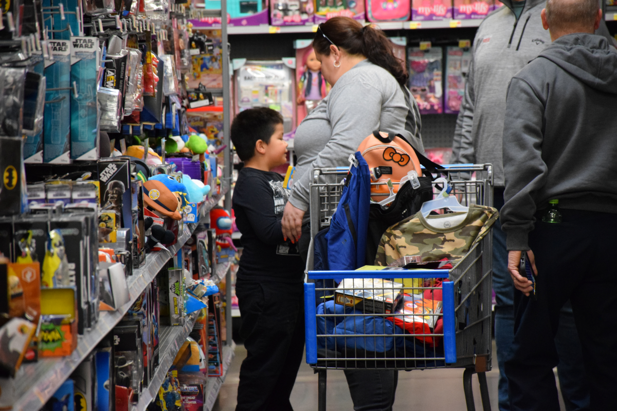 The students and their families arrived at Walmart Monday at 9:00 a.m. wearing big smiles and a lot of excitement. A budget was assigned for each family. Volunteers could not exceed the amount, distributing half of the money to be spent on clothing and the other half spent on toys or electronics.