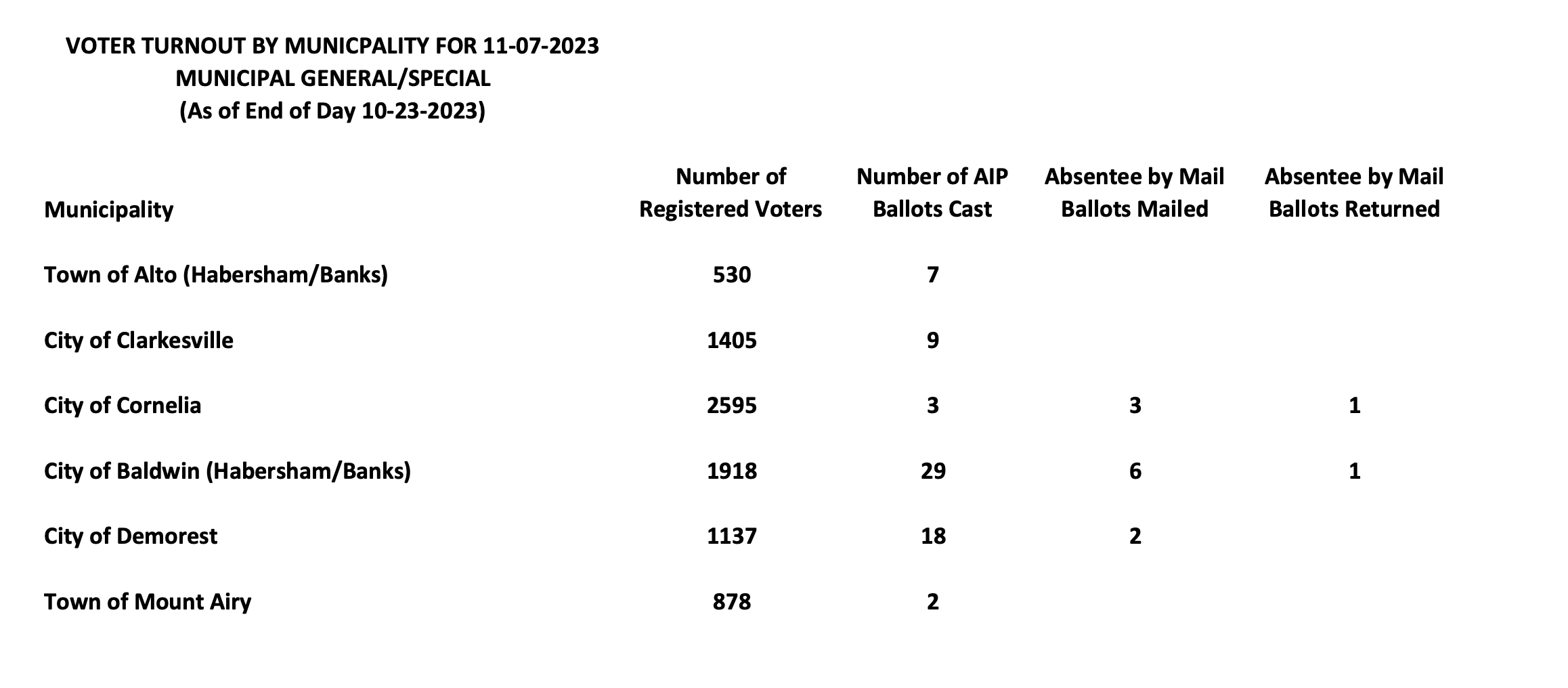 It’s been a dismal early voter turnout so far in Habersham County’s municipal elections.