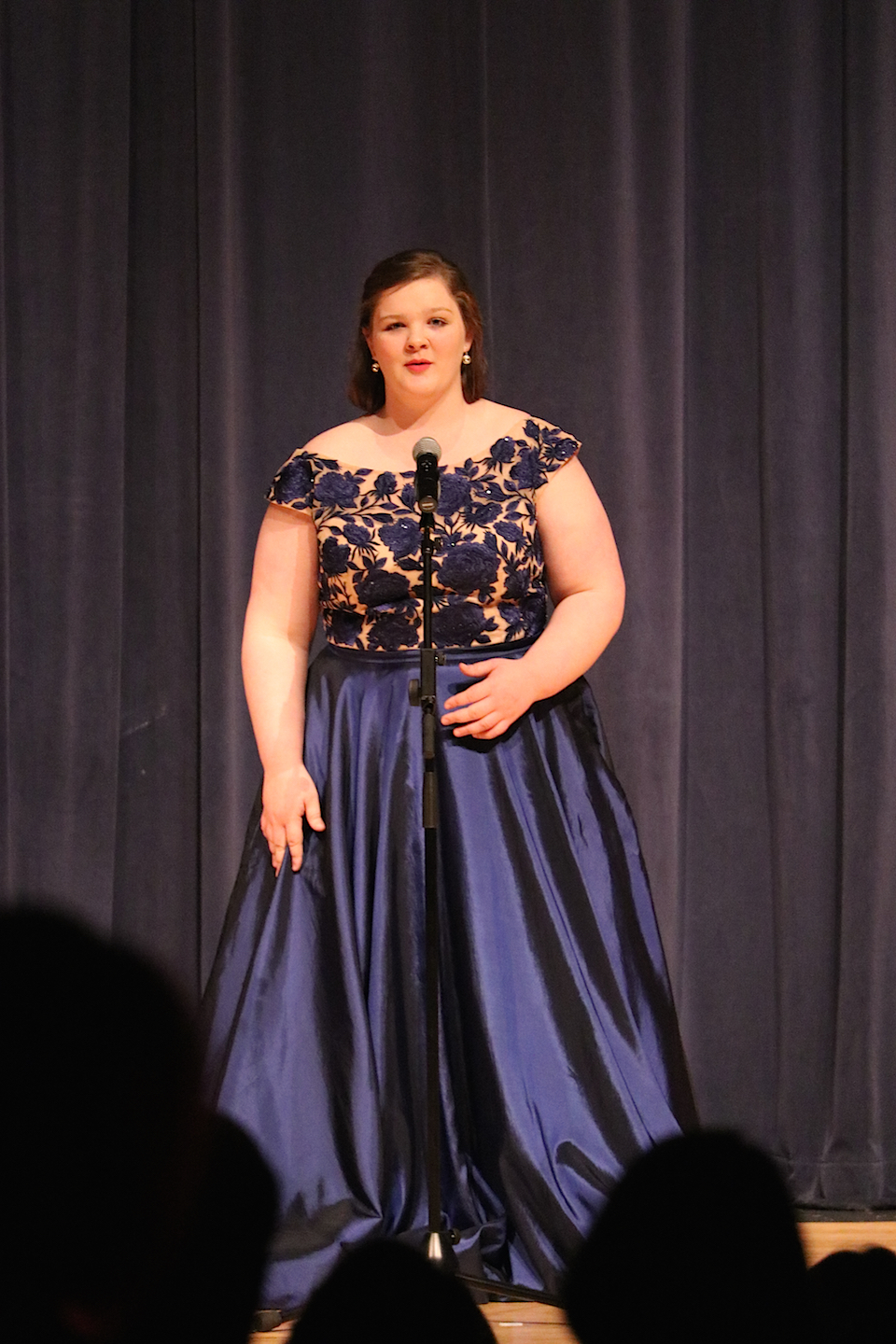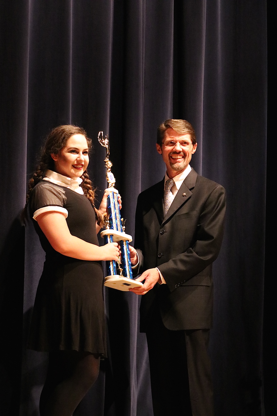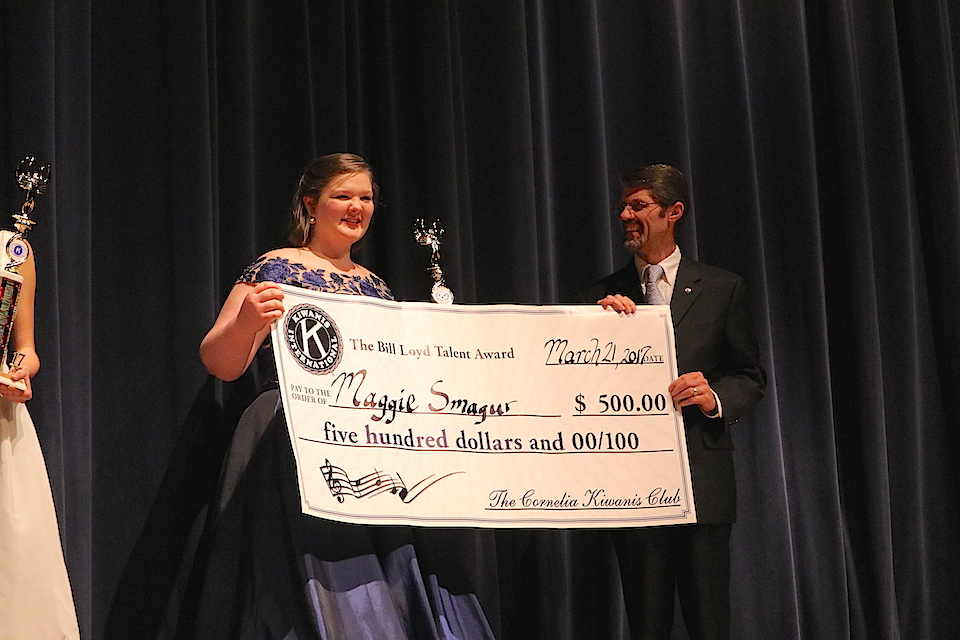 Habersham Central High School senior Maggie Smagur took top honors Tuesday at the 36th Annual Cornelia Kiwanis Talent Showcase with her rendition of the French operatic piece, “Nuit D’toilles”. Smagur competed against eleven other high schoolers to claim first prize. She received a trophy and the $500 Bill Loyd Award cash prize.