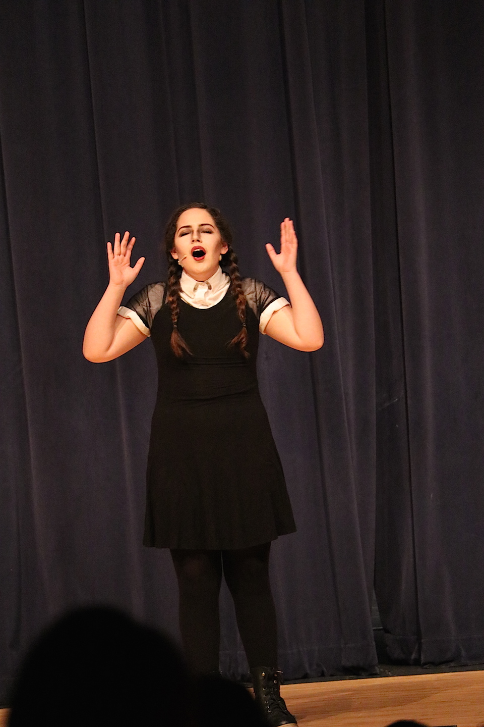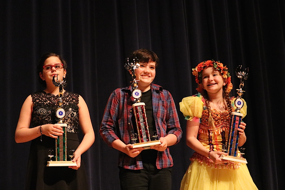 In the middle school division, Zoe Simmons placed first for her vocal and dance performance of “Morning Person.” Patrick Highsmith placed second for his vocal rendition of “Red Rider BB Gun” and Ariel Schwartz won third for “The Prayer.”