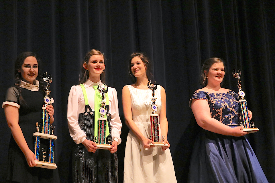 Second place in the high school division went to Brenna Dann for her piano performance of Mozart Concerto No. 20 K. 466. Emerald Patterson placed third for her song and dance routine to the Broadway tune, “Anything Goes.”