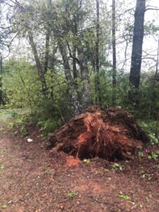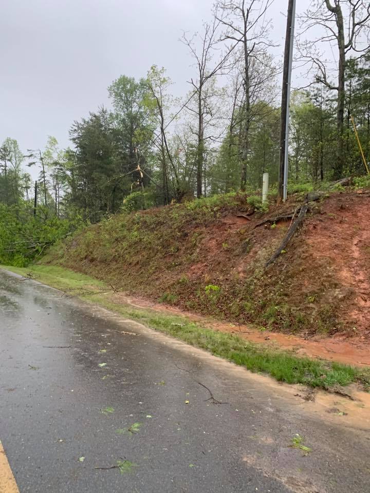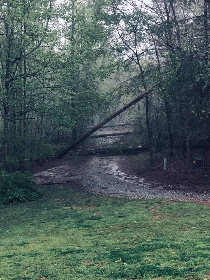 As dawn broke, people in Habersham began reporting downed trees and power lines across the county. A tree fell on several houses off Heads Ferry Road in Cornelia and several downed trees blocked the roadway. Traffic on Habersham Mill Road was blocked at the bridge due to downed power lines. There were also reports of multiple trees and power poles down off of Water Wheel Court and Chattahoochee Way south of Duncan Bridge Road off of Pea Ridge.