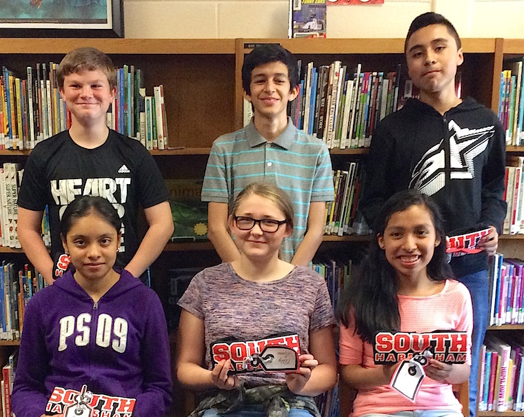 The following students were chosen for Rebel of the Month for the month of April. Pictured from left to right are: (front row) Elizabeth Enriquez (sixth grade), Abby Lovins (seventh grade), Christina Diego (eighth grade), (back row) Xander Jackson (sixth grade), Jose Villagomez (seventh grade), and Brayan Alvarado (eighth grade).