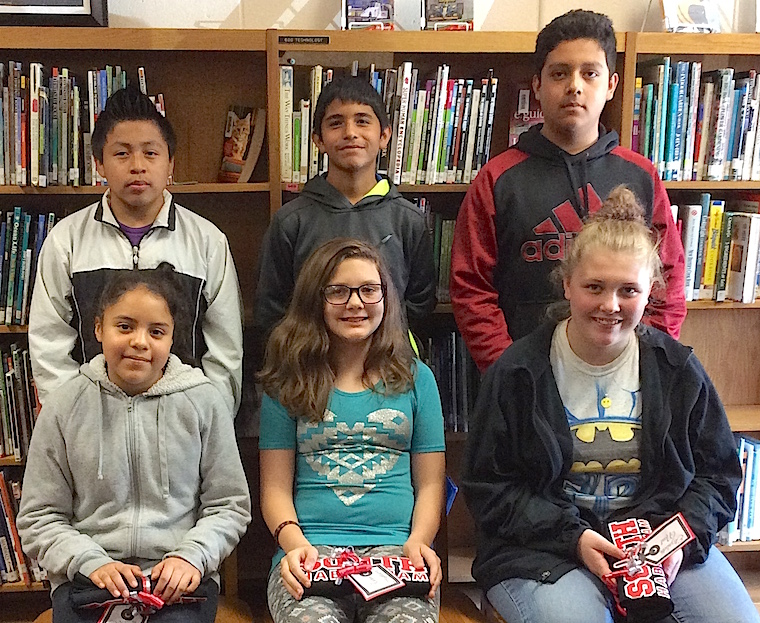 Pictured from left to right are: (front row) Dulce Mendoza (sixth grade), Ravyn Hightower (seventh grade), Elizabeth Neal (eighth grade), (back row) Miguel Pascal Perez (sixth grade), Kevyn Martinez (seventh grade), and Cristhian Ramirez (eighth grade).