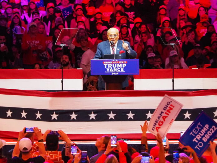 Giuliani, a major player in Trump’s false claim that he won the 2020 election, appeared at the rally just days after a federal judge in New York ordered him to surrender his apartment and valuables to election workers in Georgia whom he was found guilty of defaming.
