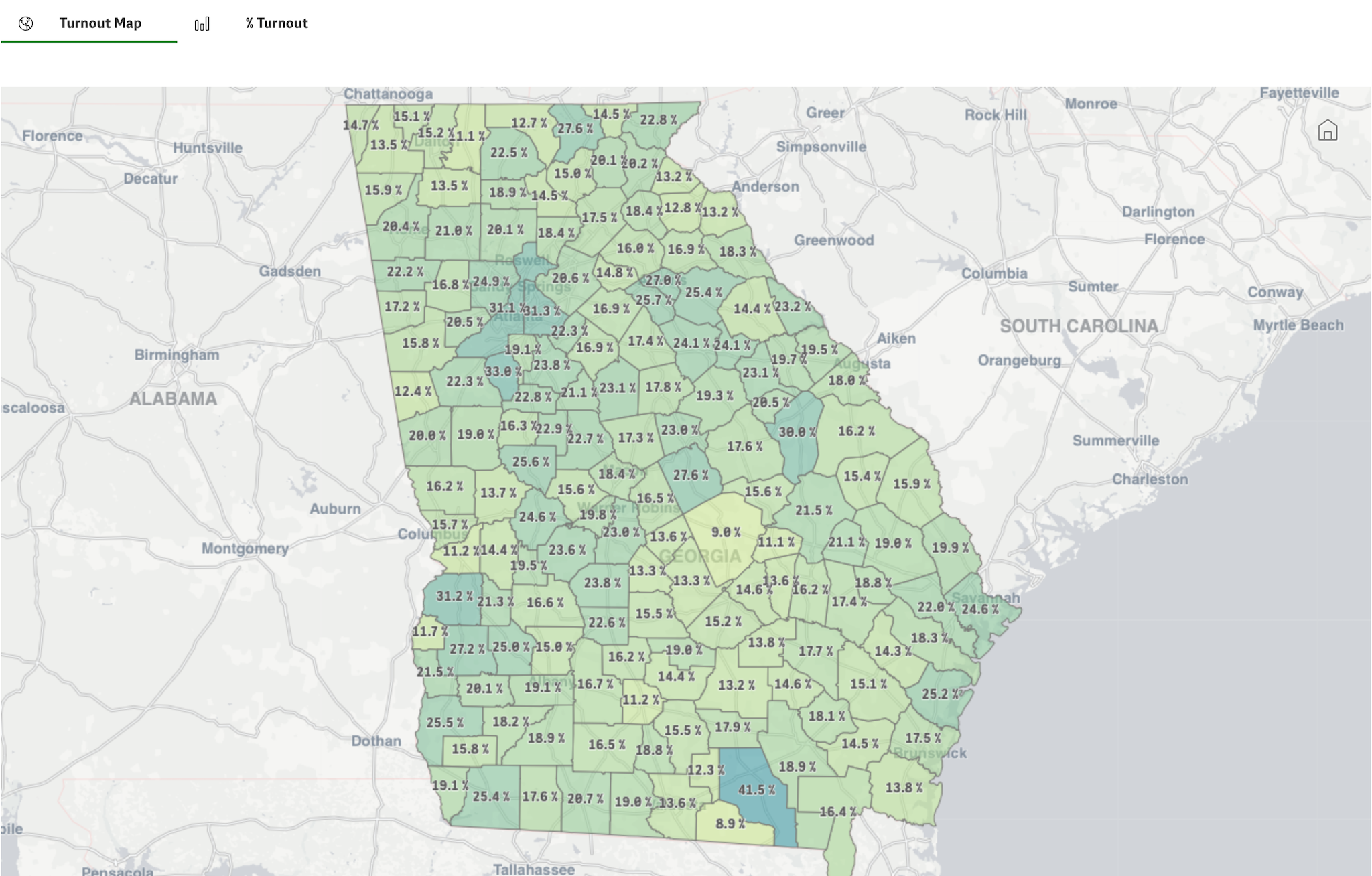 Overall turnout for the region was 18.6%. Of the region’s 787,442 registered voters, roughly 146,488 participated in Tuesday’s election. Union County led Northeast Georgia with the highest turnout at 27.6%, followed closely by Clarke County at 27%.