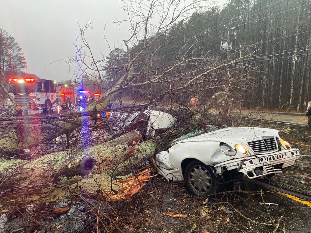 A 78-year-old man was killed on a state highway in Jonesboro, Georgia, when a tree fell on his car during heavy rain.