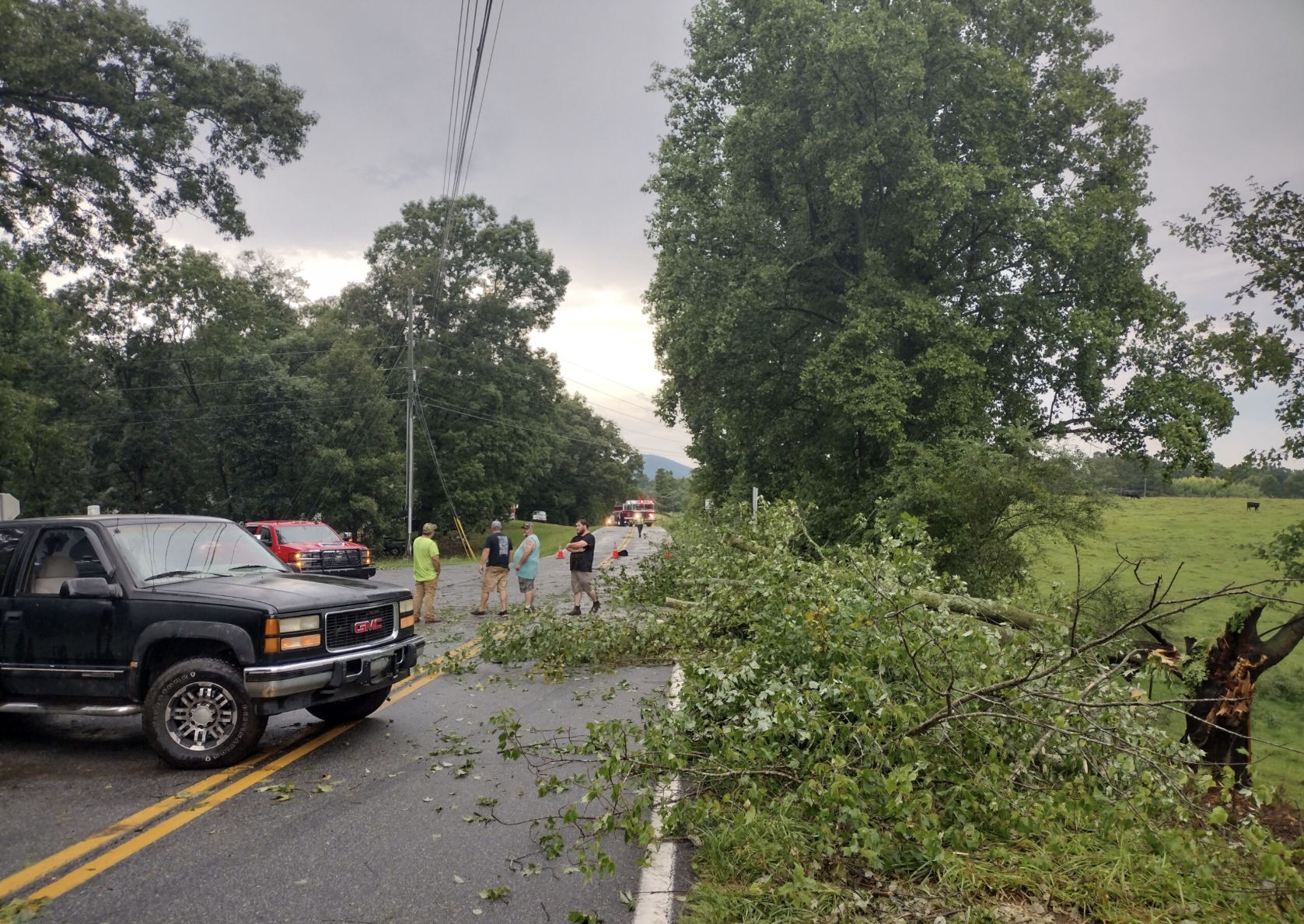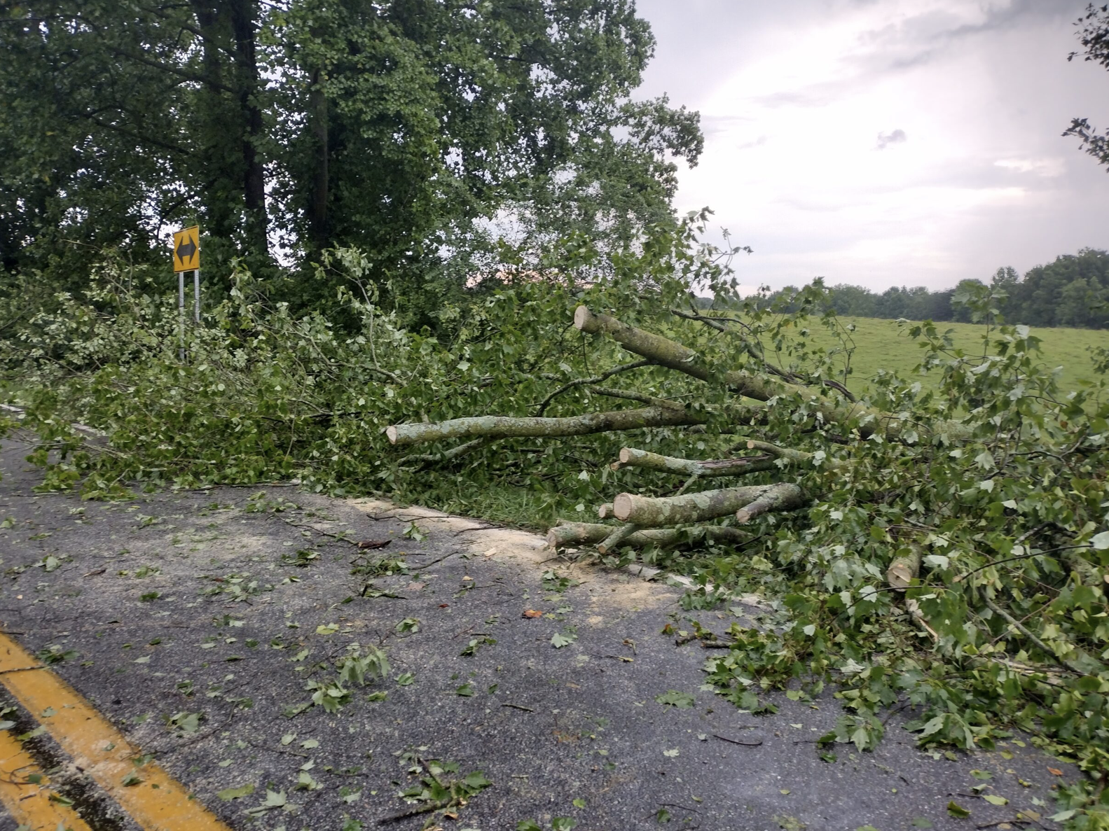 The increased wind speeds were too much for several large trees in the Mossy Creek area, as three to four large trees were pushed over onto Post Road between Cooley Woods Road and Airport Road. These trees fell across powerlines, pulling them down and causing power loss to about 300 customers in the area.