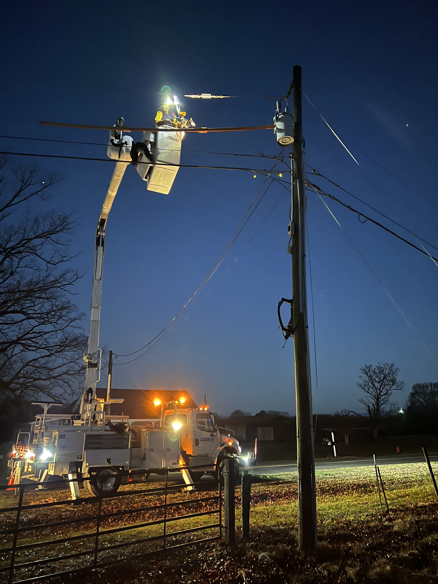 CLARKESVILLE, Ga. — Strong storms that moved through Northeast Georgia overnight knocked out power to thousands of customers across the region, prompting utility crews to work through the night to restore service.