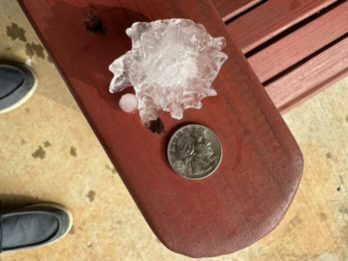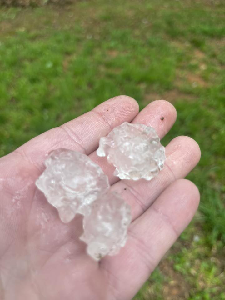 Hail up to near half dollar size was reported in the strongest cell near Mt. Airy, with dime to quarter size hail falling in many other locations.