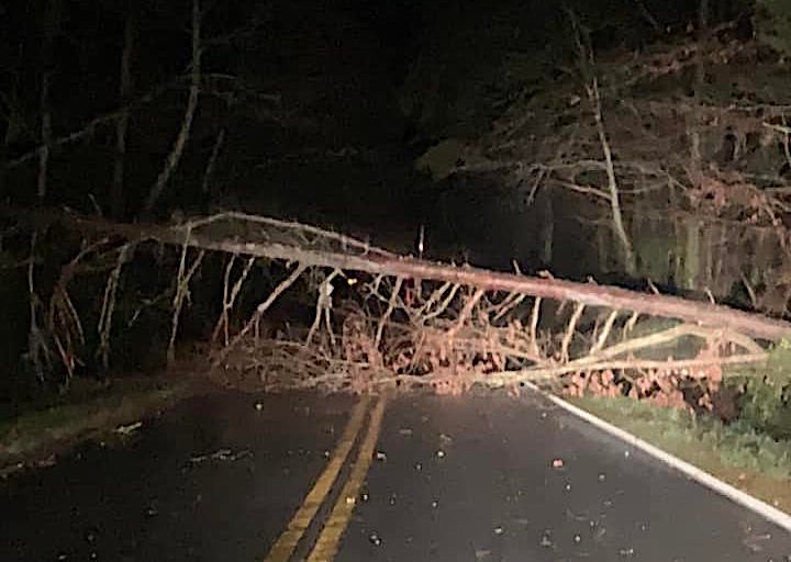Several state highways in the region were temporarily blocked by fallen trees, a large number of them in the Sautee Nacoochee area where many residents remained without power Tuesday.