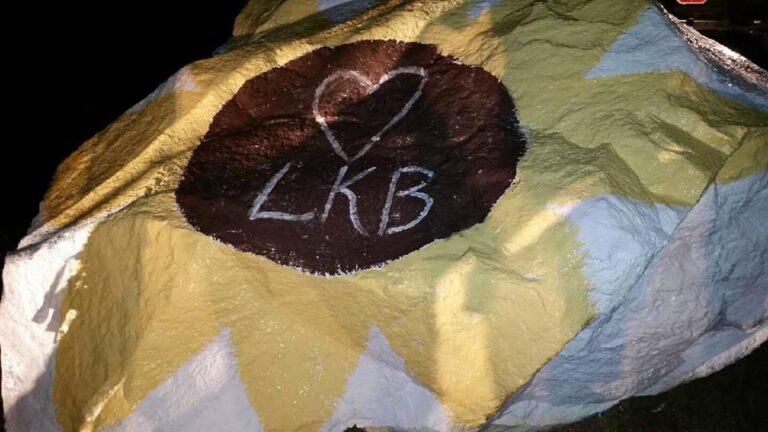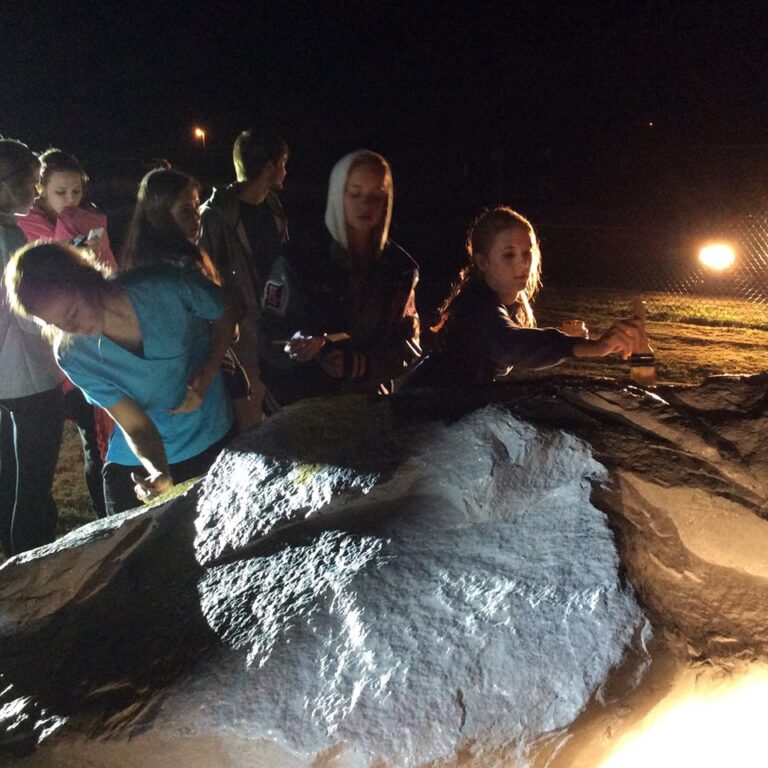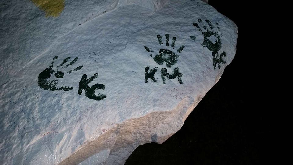 As word of the accident filtered out through the news and social media, students and faculty responded. They joined the Brown family at the hospital to offer support and encouragement. A group of more than a dozen returned home to Habersham late last night to send Lindsey a message. They gathered at ‘the rock’ on the high school campus in Mt. Airy and showed their solidarity by painting it with a flower with her initials in the center surrounded by their handprints. The students also included a Bible verse, Isaiah 40: 29-31: