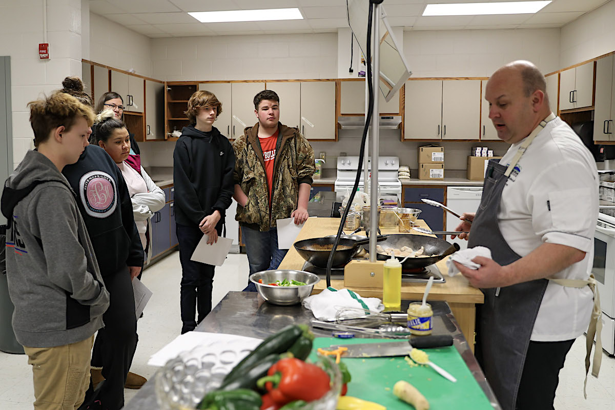 In the culinary classroom, Certified Executive Chef and NGTC Culinary Instructor Chris Bladowksi taught students healthy and fast recipes to prepare. He also taught them about safe food preparation, including how to avoid cross-contamination when cooking with raw chicken.