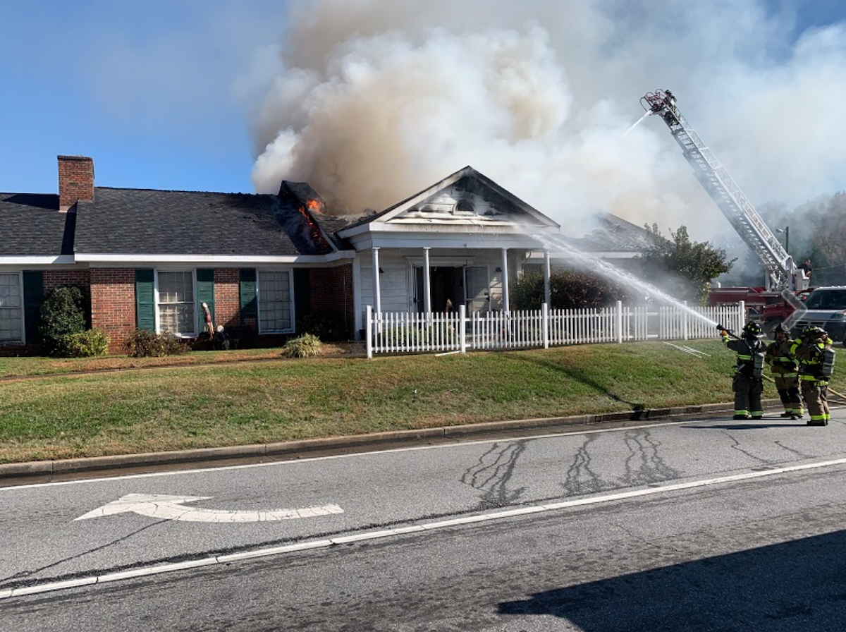 Fire Chief Ricky Pruitt, who was injured when he fell running to get one of the fire trucks out of the fire station to respond said: “ Upon our arrival, it had almost vented through the roof so it had been burning for quite a while.”