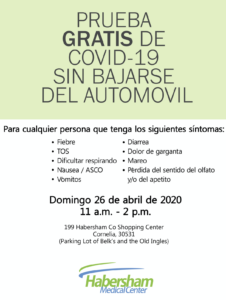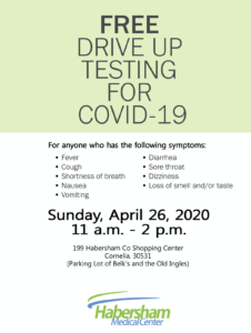 In an effort to try and mitigate the COVID-19 surge in Habersham County, Habersham Medical Center (HMC) in Demorest is teaming up with the Georgia Department of Public Health and local community partners to provide free, drive-up testing on Sunday, April 26 in Cornelia.