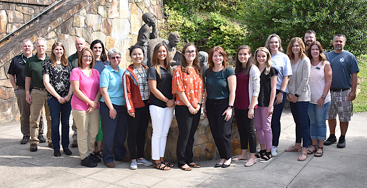 Shown, from left, are new faculty and staff members for the 2019-20 academic year Bill Goatcher [security], Ron Bergstrom [plant services], Jennifer Kennedy [upper school English/broadcasting], Stuart Delugach [security], Tara Broome [food services], Jill Hunter [upper school fine arts], Lynda Jenkins [upper school science], Yibo Dong [upper school Chinese], Brianna Webb [upper school academic assistant], Rachel Nichols [middle school English 5], Jennifer Ayers [middle school academic assistant], Rachel LeGrand [middle school fine arts], Hannah Wall [middle school science 6], Brandi Wood [middle school mass communications], Sonya Chesser [middle school math 8], Jeremy Stille [upper school history], Deborah Morrison [upper school math], Matthew Crotta [upper school Spanish]. (Brian Boyd/Tallulah Falls School)